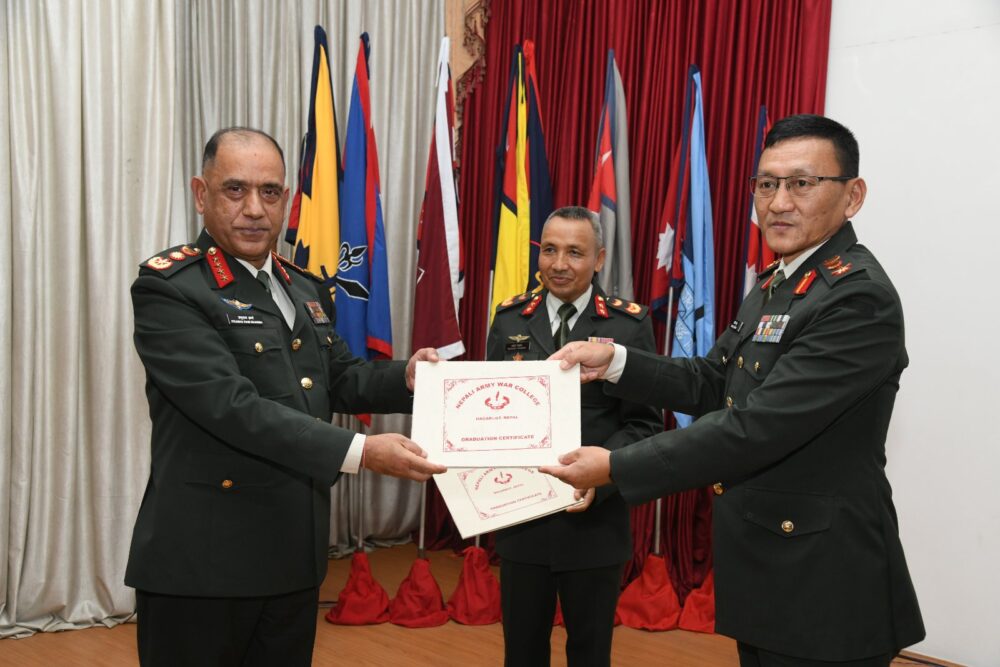 प्रधानसेनापति शर्माले शिक्षार्थी अधिकृतहरुले तालिमको दौरान प्राप्त गरेका ज्ञानलाई आगामी दिनहरुमा आफ्नो वृत्तिविकास र संस्थागत हितका लागि सामूहिक भावनाका साथ सदुपयोग गर्ने विश्वास व्यक्त गर्नुभयो ।