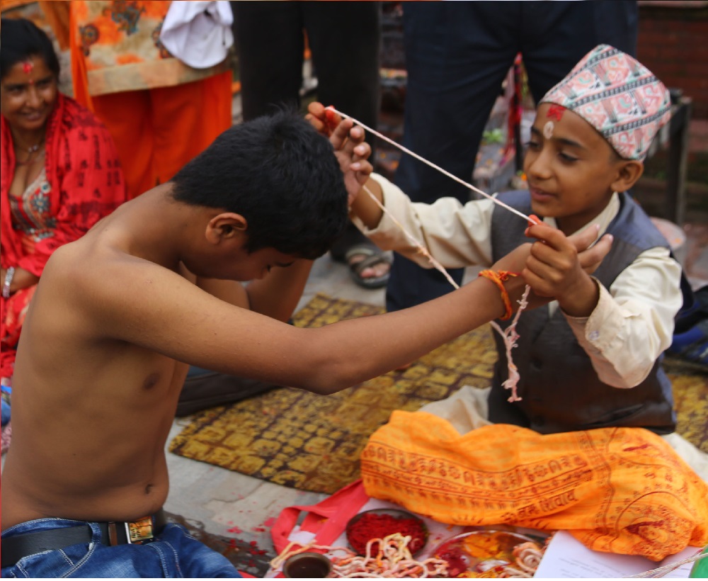 वैदिक गुरु परम्पराअनुसार यज्ञोपवीत अर्थात् जनैलाई ब्रह्मसूत्र अथवा ज्ञानको धागोसमेत भनिन्छ । रक्षाबन्धन बाँध्न एवं नयाँ जनै फेर्न बिहानैदेखि पशुपतिनाथ मन्दिर परिसर, वसन्तपुरस्थित अशोक विनायकलगायत वाग्मती नदीको किनार र काठमाडौँ उपत्यकालगायत देशभरका मठ मन्दिरमा भक्तजनको भीड लागेको थियो । यस वर्ष नयाँ भेरियन्टसहितको कोरोना जोखिम कायमै रहेकाले भौतिक दूरी कायम गरी सांस्कृतिक पर्व मनाउन सरकारले आह्वान गरेकाले मानिस केही सजग देखिन्थे ।