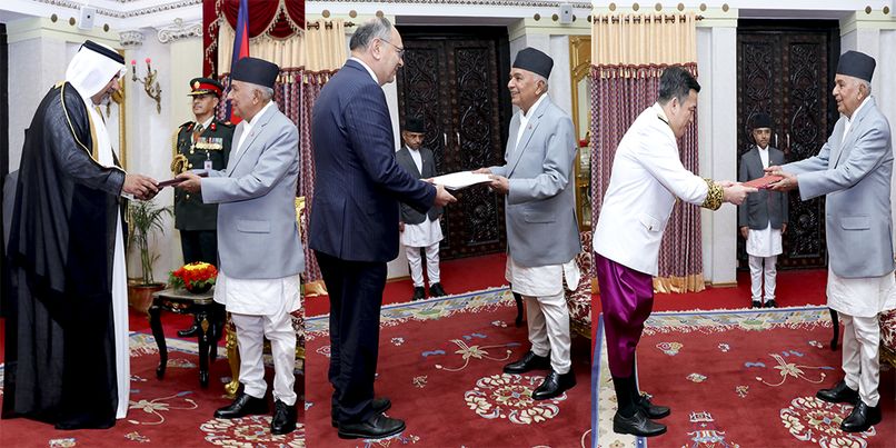 राष्ट्रपति रामचन्द्र पौडेल समक्ष नेपालका लागि विभिन्न तीन देशका राजदूतले ओहोदाको प्रमाणपत्र बुझाएका छन्।