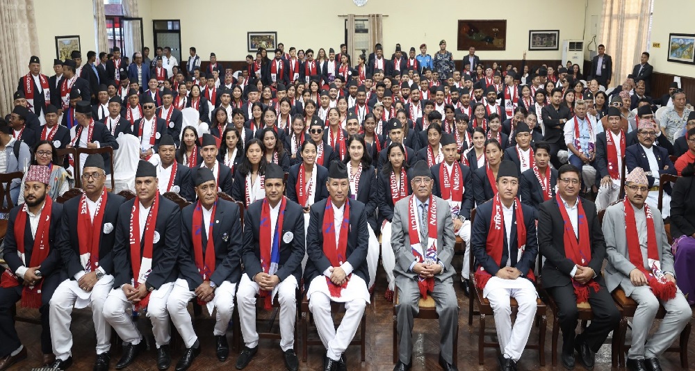 प्रधानमन्त्री पुष्पकमल दाहाल ‘प्रचण्ड’ले १९ औँ एसियाली खेलकुद प्रतियोगितामा सहभागिता जनाउन जाने नेपाली टोलीलाई सफलताको शुभकामना दिँदै बिदाइ गर्नुभएको छ ।