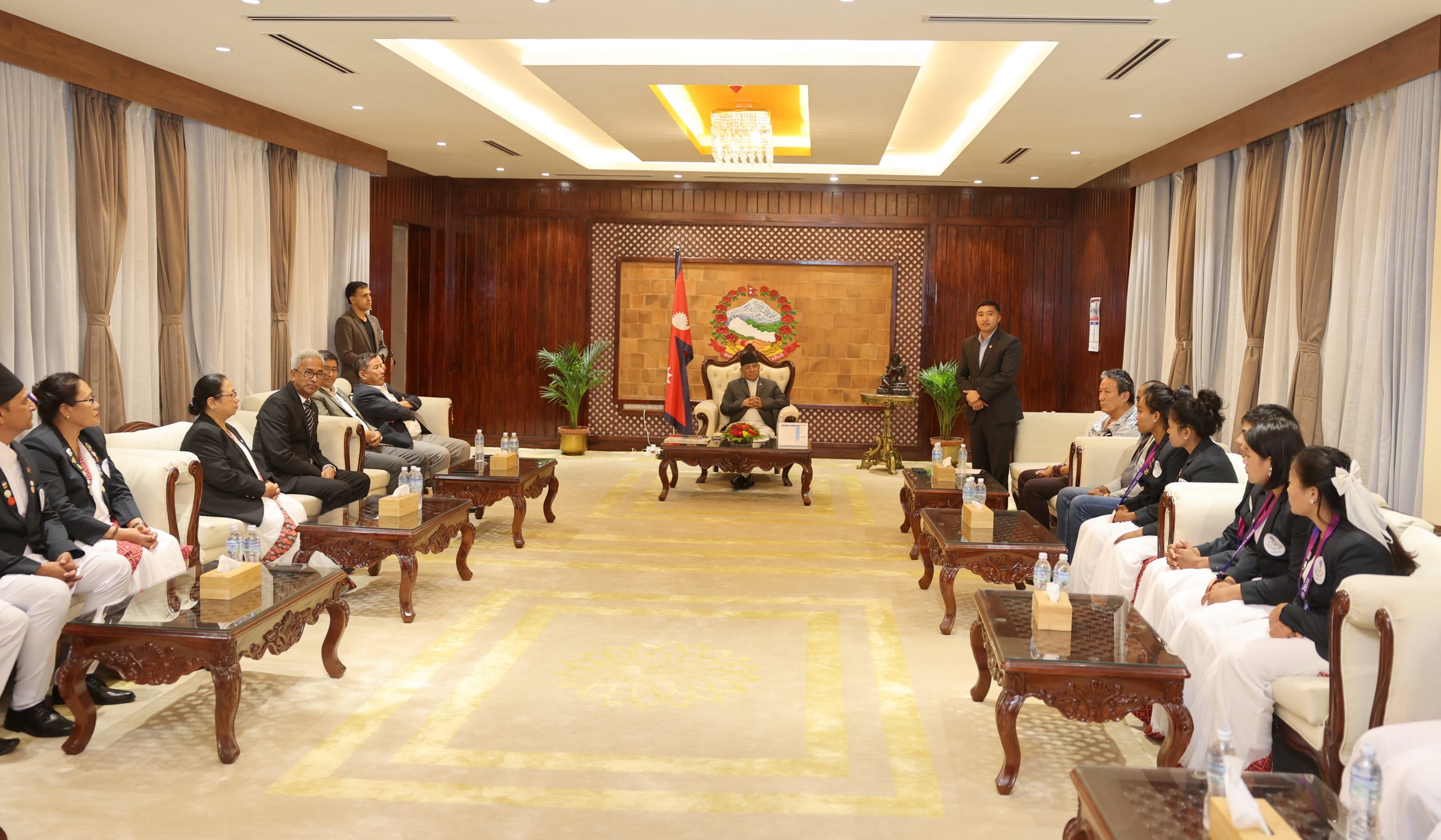 प्रधानमन्त्री निवास बालुवाटारमा भएको भेटघाटमा प्रधानमन्त्री प्रचण्डले प्रतियोगितामा महिला सहभागिताको लागि आफूले बधाई दिएको उल्लेख गर्दै अहिले महिलाले नै मेडल ल्याएको र रेकर्ड बनाएको बताउनुभयो ।