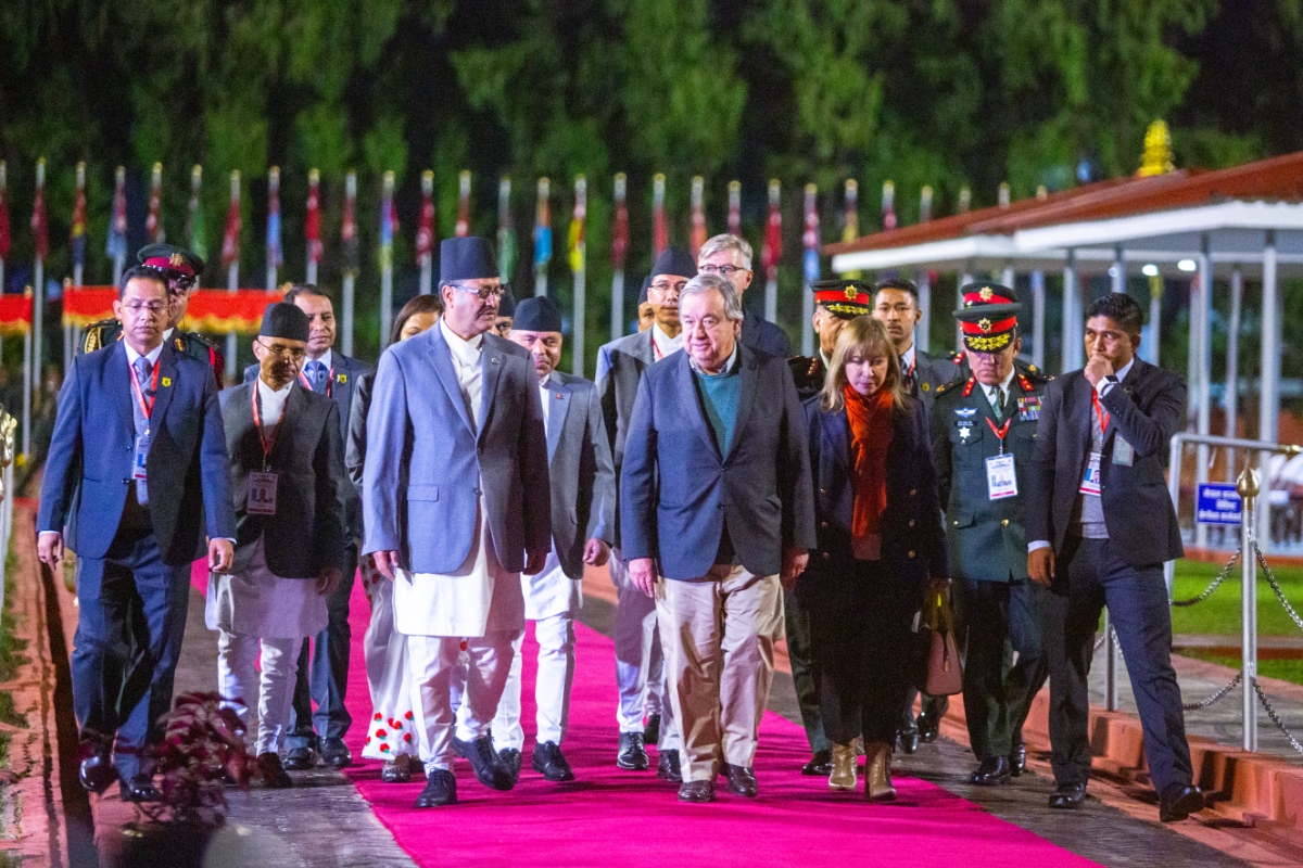 सो अवसरमा नेपाल सरकारका उच्च अधिकारी, नेपालस्थित संयुक्त राष्ट्रसङ्घको कार्यालयका प्रतिनिधिलगायत उपस्थित हुनुहुन्थ्यो । महासचिव गुटेरेसको स्वागतमा नेपाली सेनाले सम्मान गारत अर्पण गरेको थियो ।