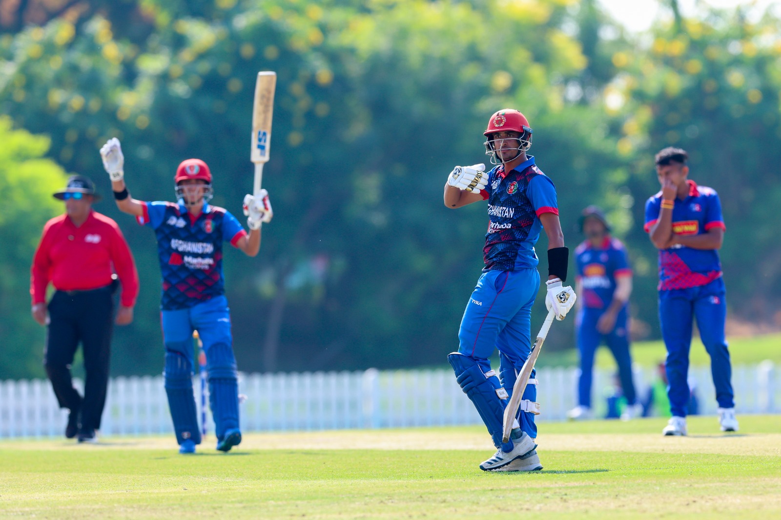 अफगानिस्तानका जाम्शिद जद्रानले १ सय ६ रनको शतकीय इनिङ खेलेका थिए । उनी खुट्टामा समस्याका कारण रिटायर्ड हर्ट भएका थिए । त्यस्तै नौमान साह अघाले ६० रनको आक्रामक इनिङ खेलेका थिए । नेपालका गुलसन झा, सुवास भण्डारी र हेमन्त धामीले समान २ तथा आकाश चन्द र दिपेश कँडेलले समान एक विकेट लिएका थिए ।