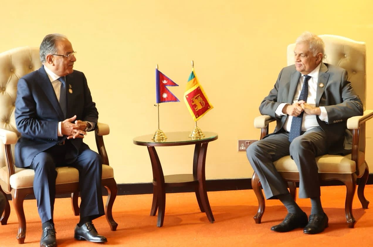 नेपाल सरकारका प्रधानमन्त्री पुष्पकमल दाहाल र श्रीलङ्काका राष्ट्रपति रनिल विक्रमासिङ्घेबीच भेटवार्ता भएको छ ।