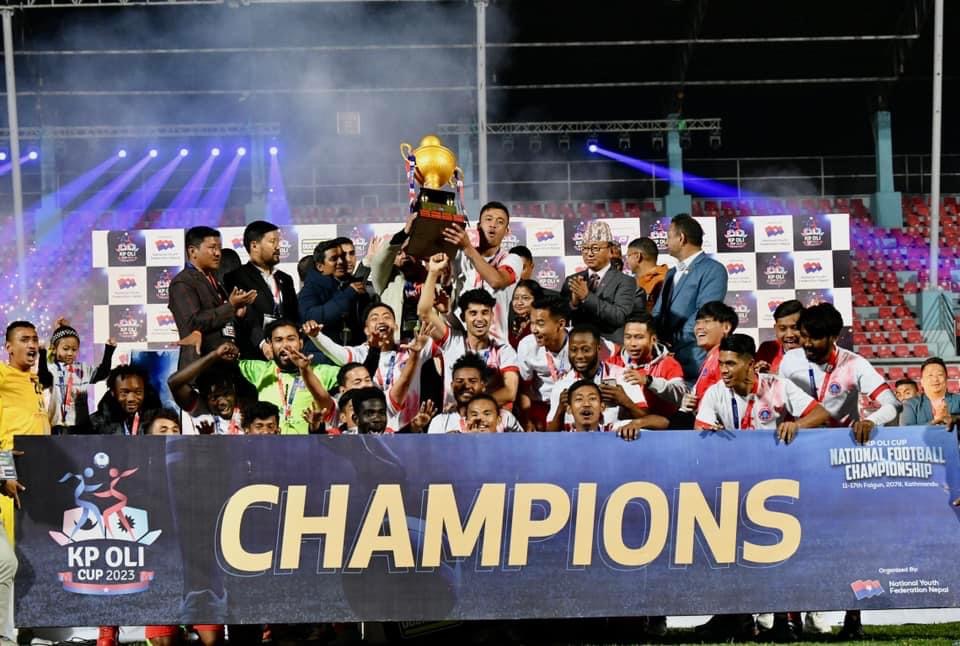 केपी ओली कप राष्ट्रिय फुटबल प्रतियोगिताको उपाधि मच्छिन्द्र क्लबले जितेको छ ।