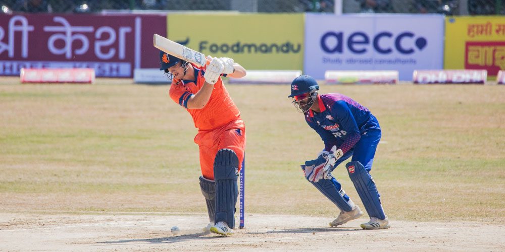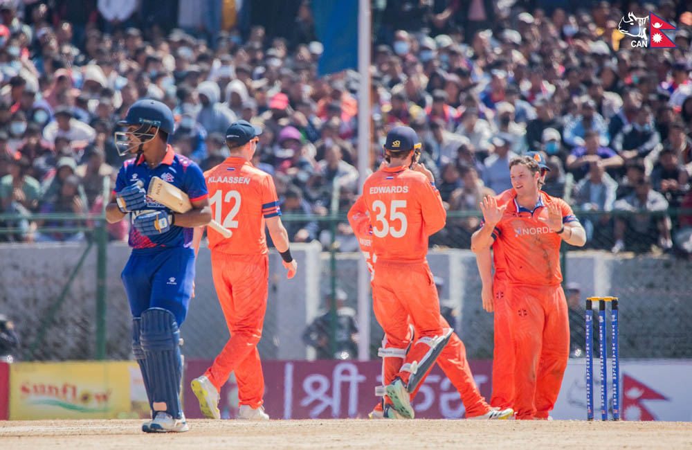 उत्कृष्ट सुरुआत गरेको नेदरल्याण्ड्सका लागि ओपनरद्वय लेभिट र ओ डाउडले पहिलो विकेटका लागि ८३ रनका साझेदारी गरे । नवौँ ओभरमा बलिङका लागि आएका कुशल मल्लले आफ्नो पहिलो ओभरमा दुई विकेट लिँदै नेपाललाई राहत दिलाए पनि त्यो जितका लागि पर्याप्त भएन ।