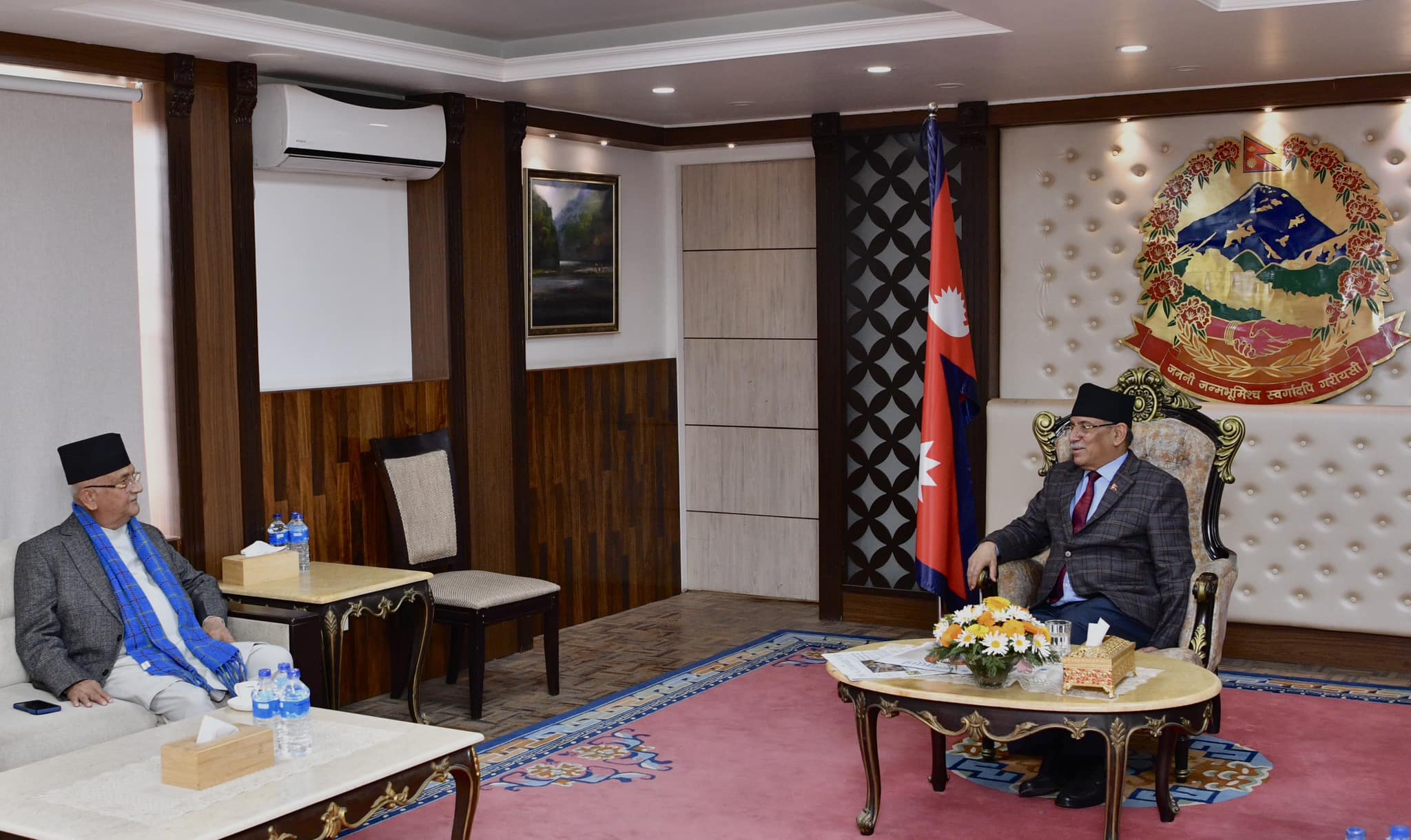 प्रधानमन्त्री तथा मन्त्रिपरिषद् कार्यालय सिंहदरबारमा उहाँहरूबीच मुलुकको समसामयिक राजनीतिक विषयमा छलफल भएको बताइएको छ ।