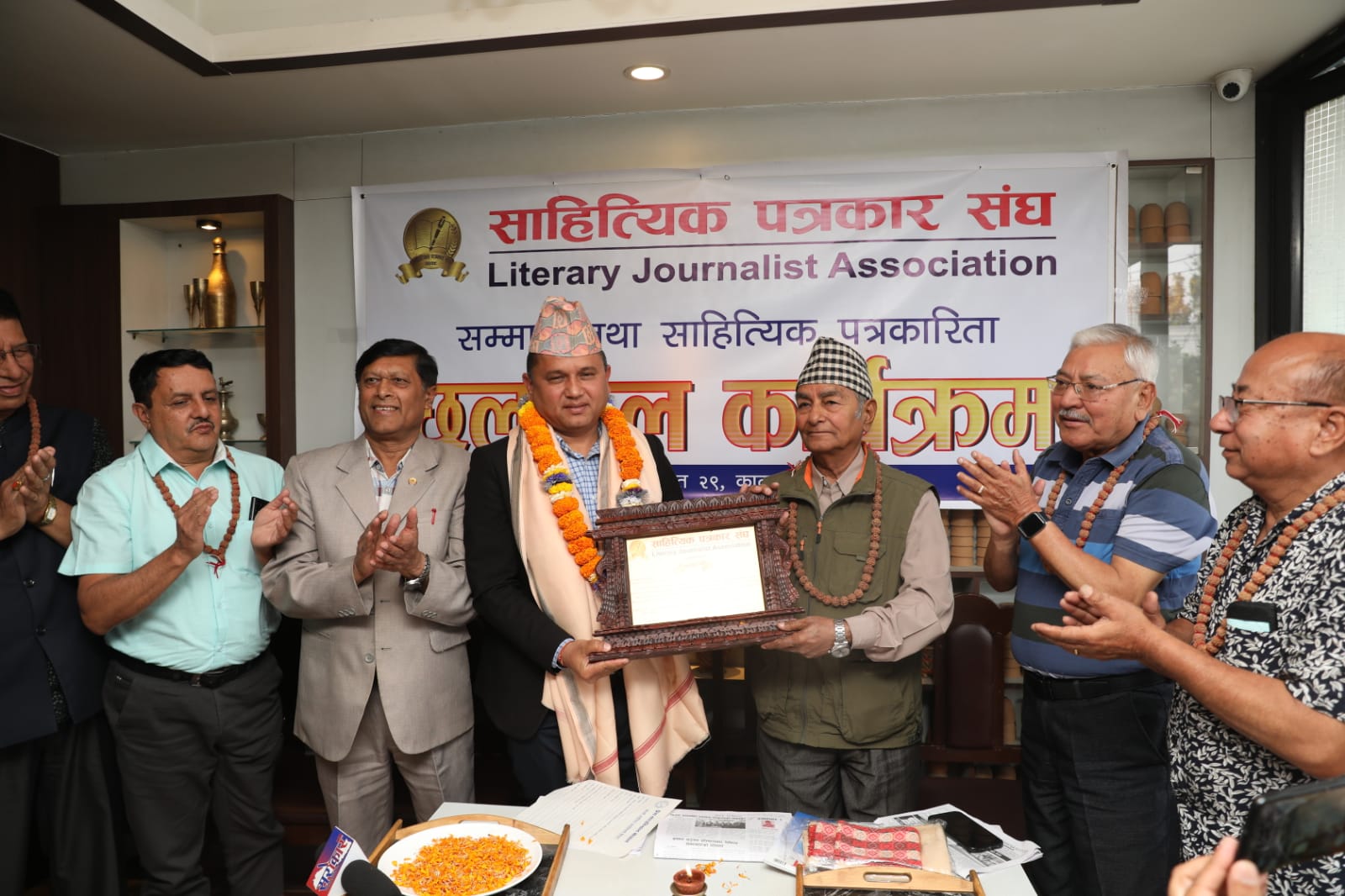 वरिष्ठ साहित्यकार रोचक घिमिरे, वरिष्ठ कलाकार मदनदास श्रेष्ठ, सगरमाथा आरोही तेम्बाछिरी शेर्पासहितले अध्यक्ष बस्नेतलाई दोसल्ला, माला र प्रमाणपत्रसहित सम्मान गर्नुभएको थियो ।