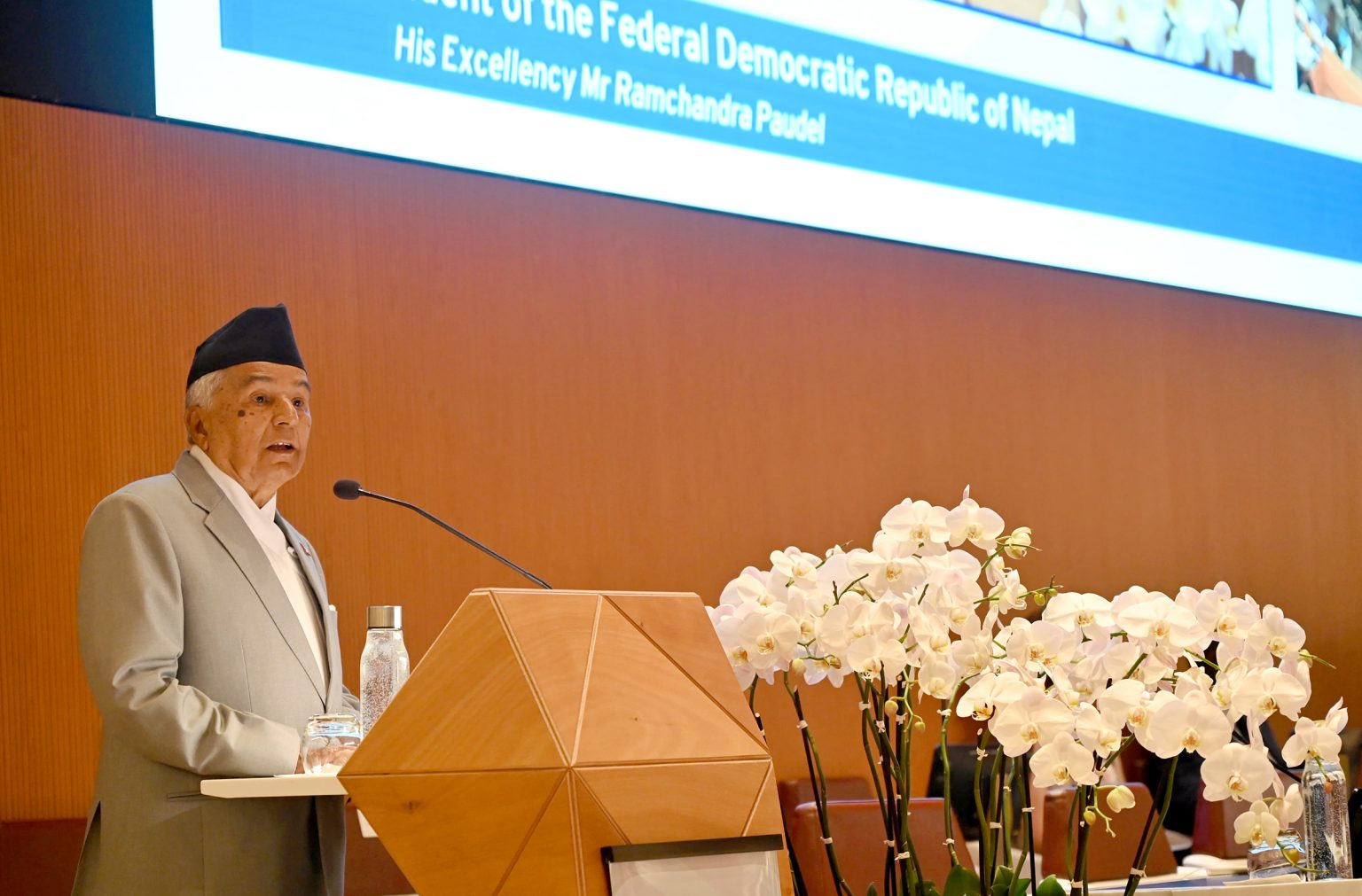 राष्ट्रपति पौडेलले विश्वले विद्युतीय, दूरसेवा अर्थतन्त्रलगायत नवीन चुनौतीलाई आत्मसात् गरेकाले यी सबै क्षेत्रमा मर्यादित श्रमको कार्यसूची कार्यान्वयन गर्न प्रतिबद्ध रहेको उल्लेख गर्नुभयो । “हामीले नयाँ काम, सीप र कार्यस्थलका लागि आफूलाई तयार राख्नुपर्दछ”, उहाँले भन्नुभयो, “विकासमा खर्च गर्नुपर्ने ठूलो रकम घातक हतियारमा लगानी गरिएको छ, अन्तर्राष्ट्रिय समुदायले यो पथलाई उल्ट्याउनुपर्छ र समग्र मानवताको समृद्धिका लागि स्रोतहरू परिचालन गर्नुपर्छ ।”