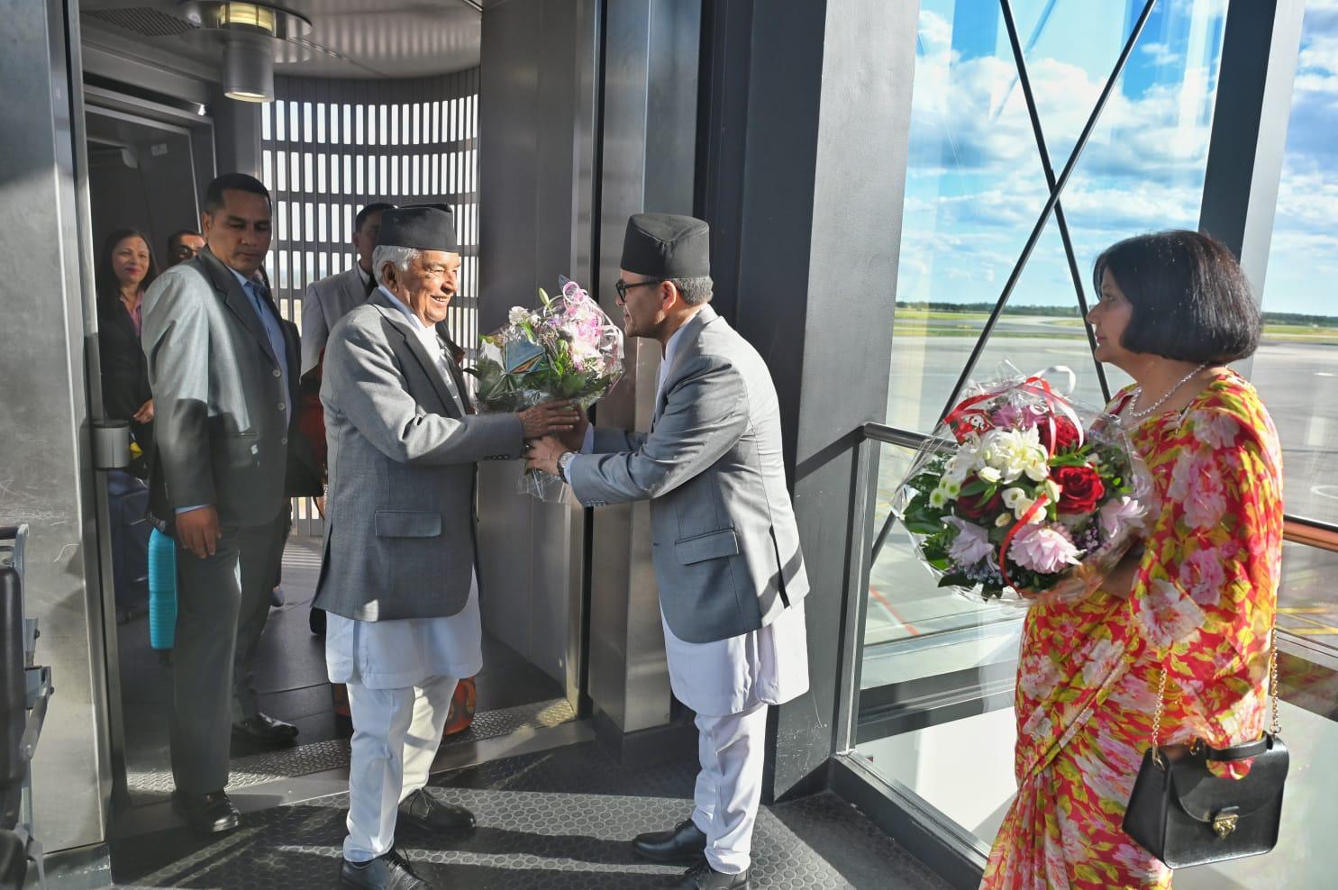 राष्ट्रपति पौडेल नेतृत्वको प्रतिनिधिमण्डललाई शनिबार अपराह्न बर्लिन ब्रान्डेनवर्ग अन्तरराष्ट्रिय विमानस्थलमा जर्मनीका लागि नेपालका राजदूत रामकाजी खड्का तथा उहाँकी धर्मपत्नी, जर्मनीका राष्ट्रपतिको सङ्घीय परराष्ट्रमामिला कार्यालयका वरिष्ठ अधिकारीले स्वागत गर्नुभएको बर्लिनस्थित नेपालको राजदूतावासले आज जनाएको छ ।