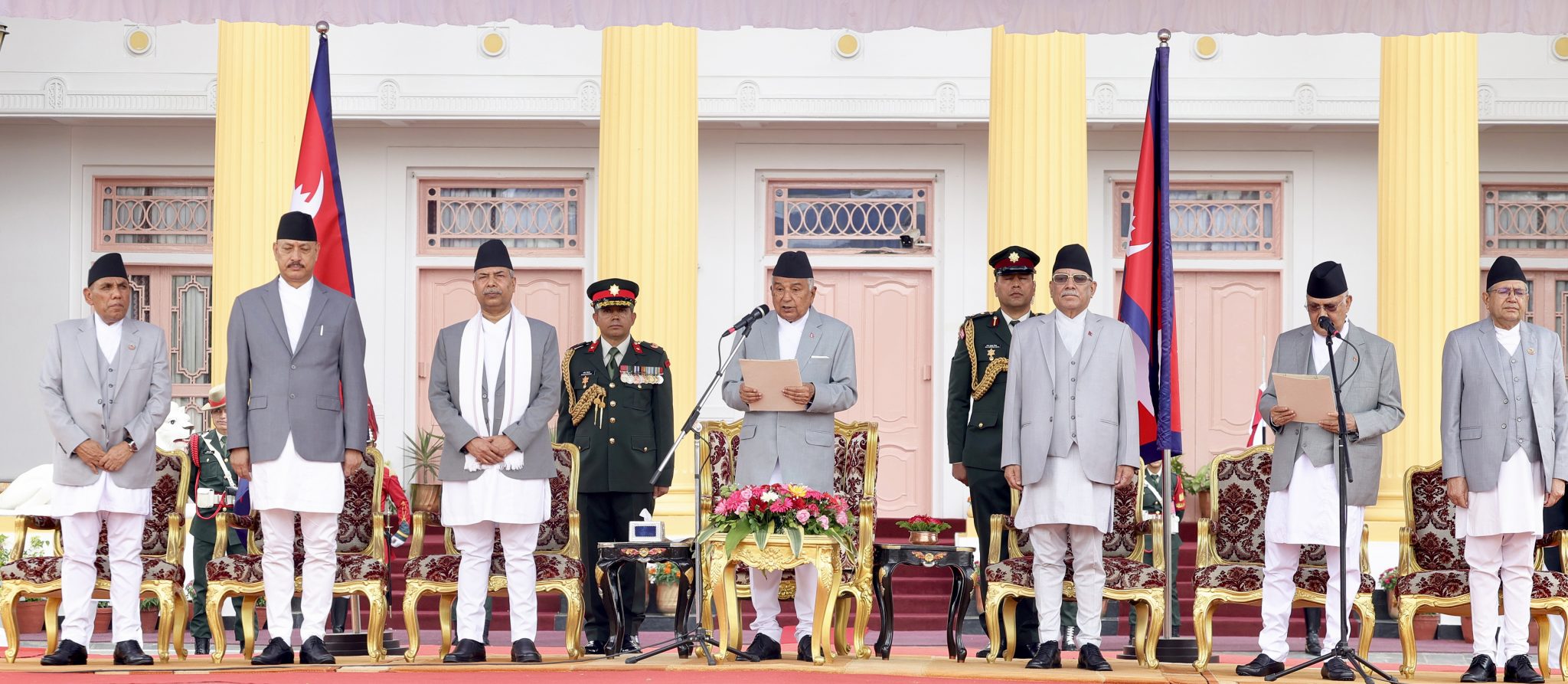 राष्ट्रपति रामचन्द्र पौडेलले नवनियुक्त प्रधानमन्त्री केपी शर्मा ओलीलाई आज प्रधानमन्त्री पदको पद तथा गोपनीयताको शपथ गराउनुभएको छ ।