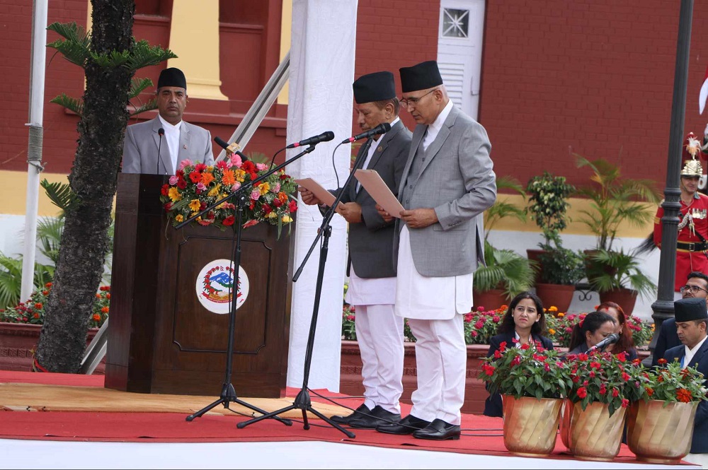 राष्ट्रपति रामचन्द्र पौडेलले नवनियुक्त उपप्रधानमन्त्री प्रकाशमान सिंह र विष्णुप्रसाद पौडेललाई आज पद तथा गोपनीयताको शपथ गराउनुभएको छ ।