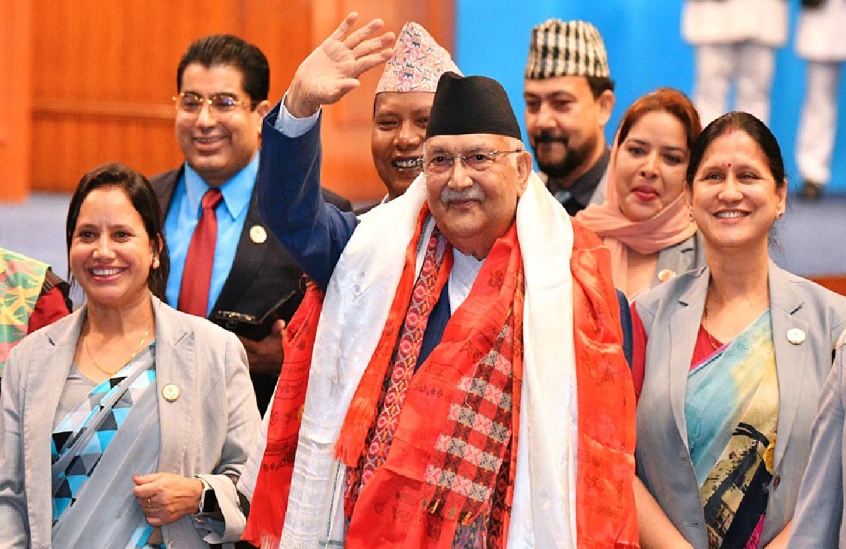 निवर्तमान प्रधानमन्त्री पुष्पकमल दाहाल ‘प्रचण्ड’ ले असार २८ गते प्रतिनिधि सभाबाट विश्वासको मत प्राप्त गर्न नसकेपछि प्रचण्ड पदमुक्त हुनुभएको थियो । एमाले अध्यक्ष ओलीलाई नेपाली काँग्रेसको समर्थनमा नेपालको संविधानको धारा ७६ को उपधारा (२) बमोजिम राष्ट्रपति पौडेलले प्रधानमन्त्री नियुक्त गर्नुभएको थियो ।