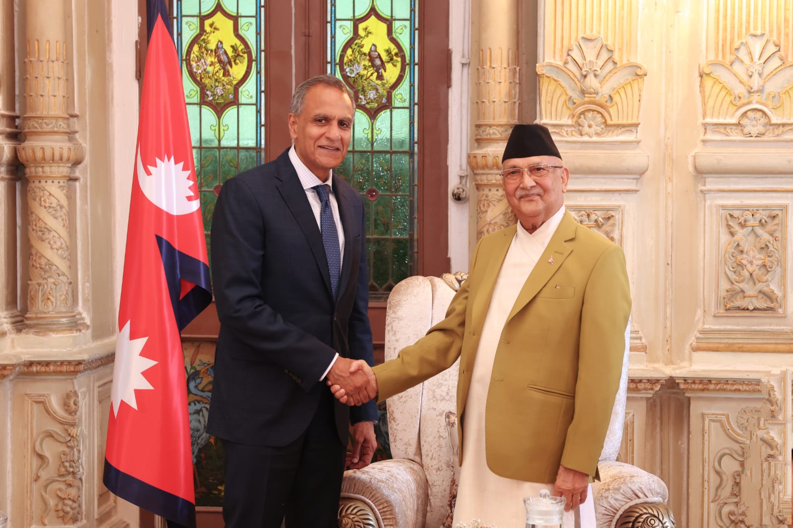 प्रधानमन्त्री तथा मन्त्रिपरिषद्को कार्यालय, सिंहदरबारमा भएको भेटमा दुईपक्षीय सम्बन्ध र आपसी हितका विषयमा छलफल भएको छ । नेपालको आर्थिक र सामाजिक विकासका क्षेत्रमा सन् १९५० देखि अमेरिकी सरकारले गर्दै आएको निरन्तर सहयोगका लागि आभार व्यक्त गर्नुभयो ।