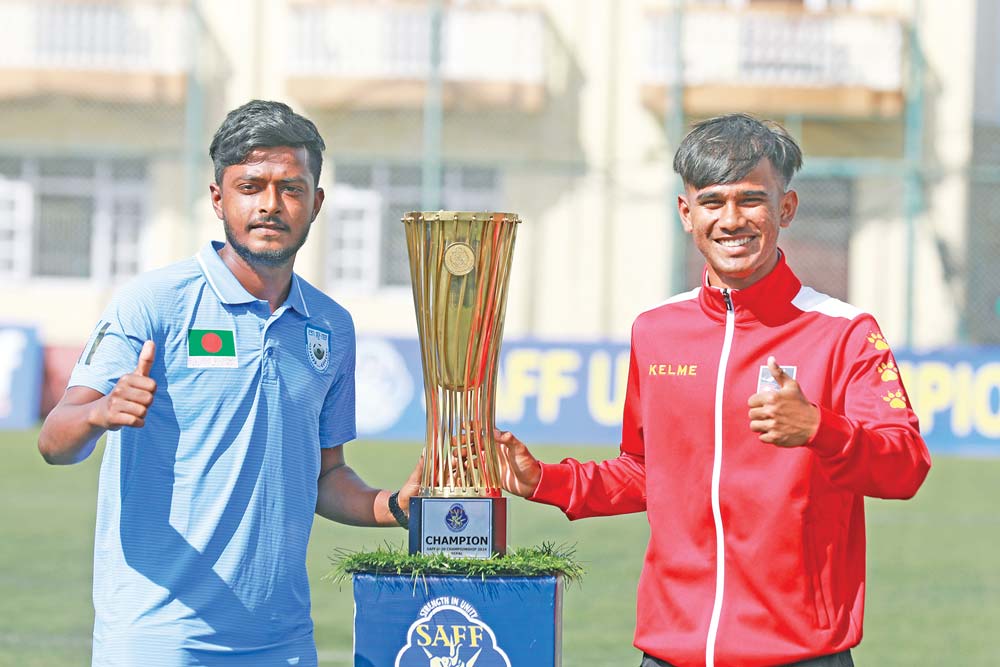 दक्षिण एसियाली फुटबल महासङ्घ (साफ) यु–२० च्याम्पियनपसिप फुटबल प्रतियोगिताको उपाधि भिडन्तमा आज नेपाल र बङ्गलादेशबीच प्रतिस्पर्धा हुने भएको छ ।