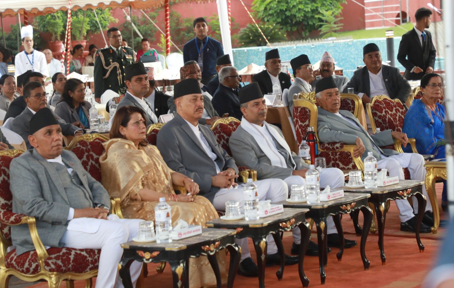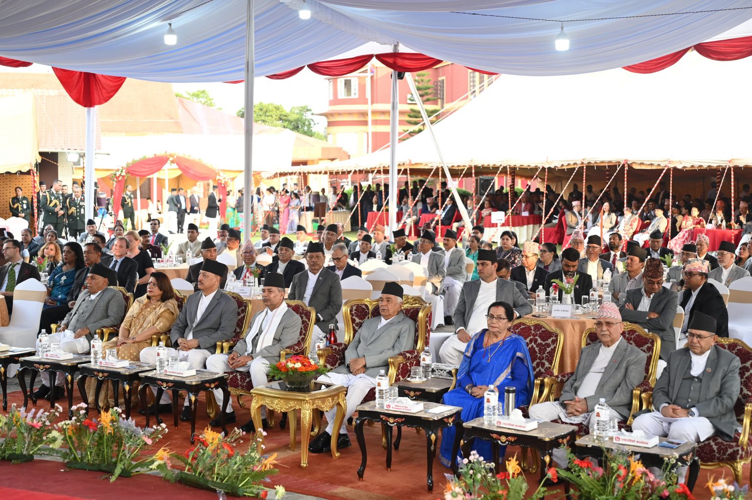 समारोहमा उपराष्ट्रपति रामसहायप्रसाद यादव, प्रधानमन्त्री केपी शर्मा ओली, प्रधानन्यायाधीश विश्वम्भरप्रसाद श्रेष्ठ, सभामुख देवराज घिमिरे, राष्ट्रिय सभाका अध्यक्ष नारायण दाहाल, उपप्रधानमन्त्री, मन्त्रीहरू, सांसदहरूका साथै संवैधानिक निकायका प्रमुख, कूटनीतिक नियोगका प्रमुख एवम् प्रतिनिधि, उच्च पदस्थ सरकारी अधिकारी तथा समाजका विभिन्न क्षेत्रका लब्ध प्रतिष्ठित व्यक्तिहरूको उपस्थिति रहेको थियो ।