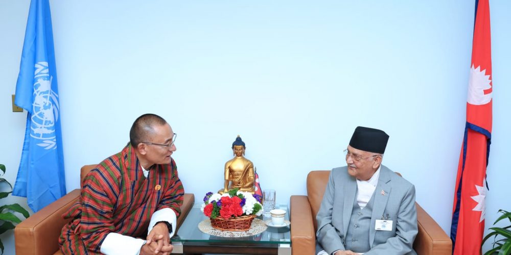 संयुक्त राष्ट्रसङ्घको ७९औँ महासभामा भाग लिन नेपाली प्रतिधिमण्डलको नेतृत्व गर्दै संयुक्त राज्य अमेरिकाको न्युयोर्कमा रहनुभएका प्रधानमन्त्री केपी शर्मा ओेली र भूटानका प्रधानमन्त्री दासो छिरिङ तोग्बेबीच आज भेटवार्ता भएको छ ।