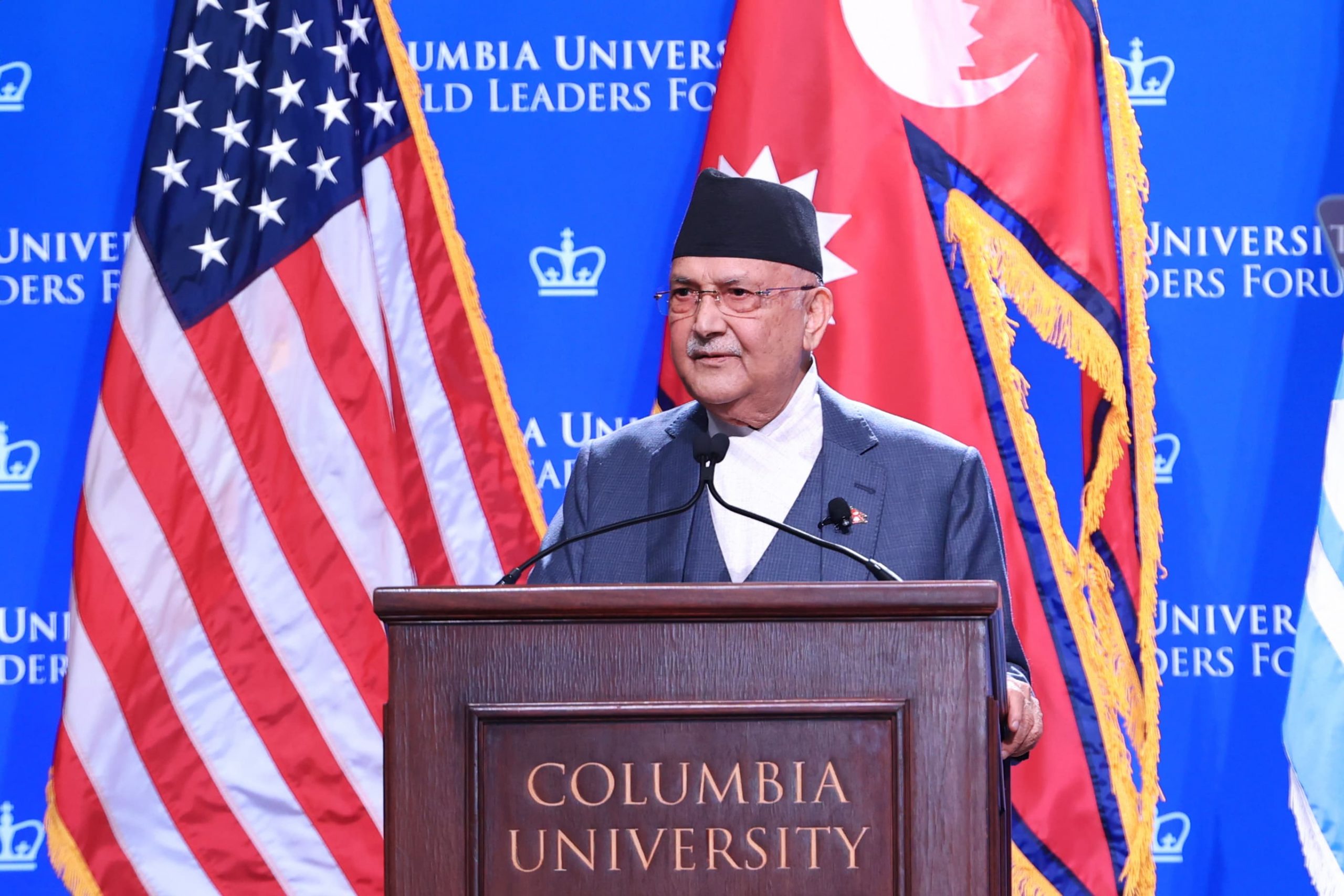 संयुक्त राष्ट्रसङ्घको ७९औँ महासभामा भाग लिन नेपाली प्रतिनिधिमण्डलको नेतृत्व गर्दै संयुक्त राज्य अमेरिकाको न्युयोर्कमा रहनुभएका प्रधानमन्त्री ओलीले सोमबार कोलम्बिया विश्वविद्यालयद्वारा आयोजित वल्ड लिडर्स फोरममा गरिबी निवारण गरी सबैलाई सम्मानजनक रूपमा बाँच्न पाउने अधिकार दिलाउन समृद्ध नेपाल सुखी नेपालीको राष्ट्रिय आकाङ्क्षा अघि सारिएको स्पष्ट पार्नुभयो ।