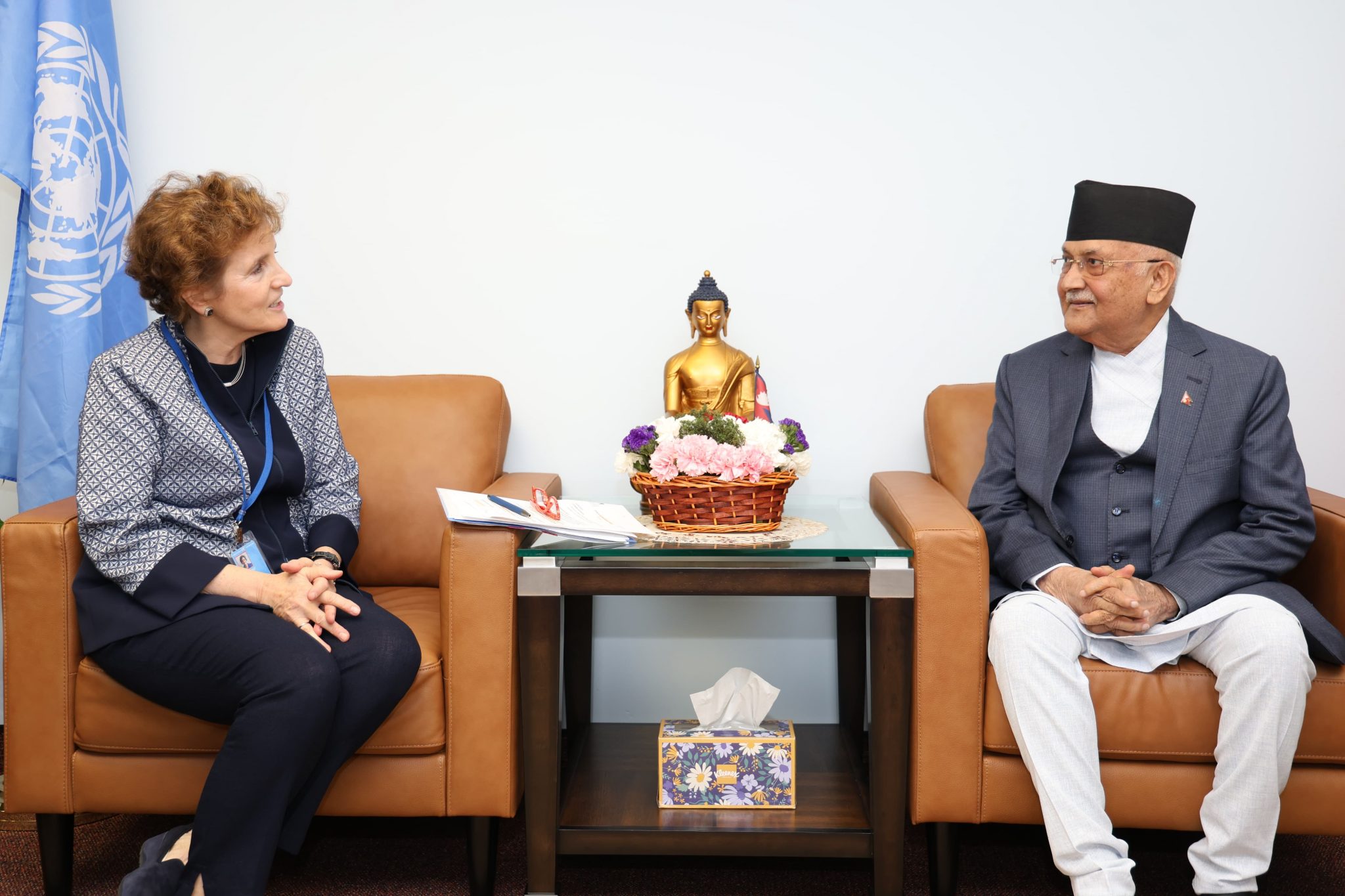 संयुक्त राष्ट्रसङ्घको ७९औँ महासभामा भाग लिने क्रममा अमेरिकाको न्युयोर्कमा रहनुभएका प्रधानमन्त्री ओलीसँगको भेटका अवसरमा प्रधानमन्त्रीका मुख्य सल्लाहकार विष्णुप्रसाद रिमाल, परराष्ट्र सचिव सेवा लम्साललगायत सहभागी हुनुहुन्थ्यो ।