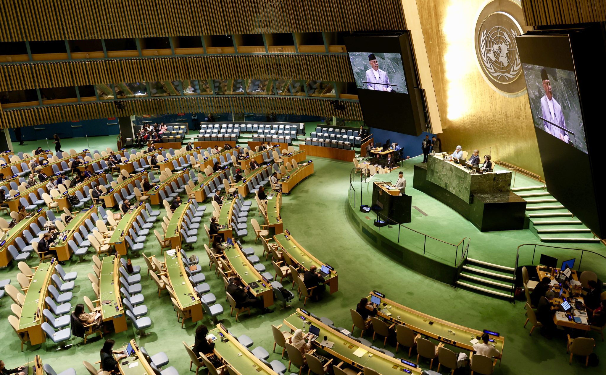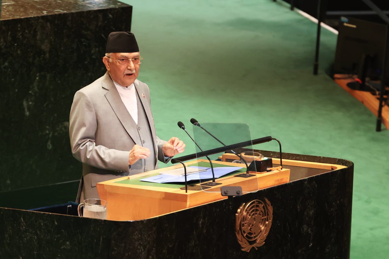 महासभामा भाग लिन नेपाली प्रतिनिधिमण्डलको नेतृत्व गर्दै अमेरिकाको न्युयोर्कमा रहनुभएका प्रधानमन्त्री ओलीले स्थानीय समय अनुसार बिहीबार साँझ ५ः३० बजे महासभामा सम्बोधन गर्नुभएको हो ।