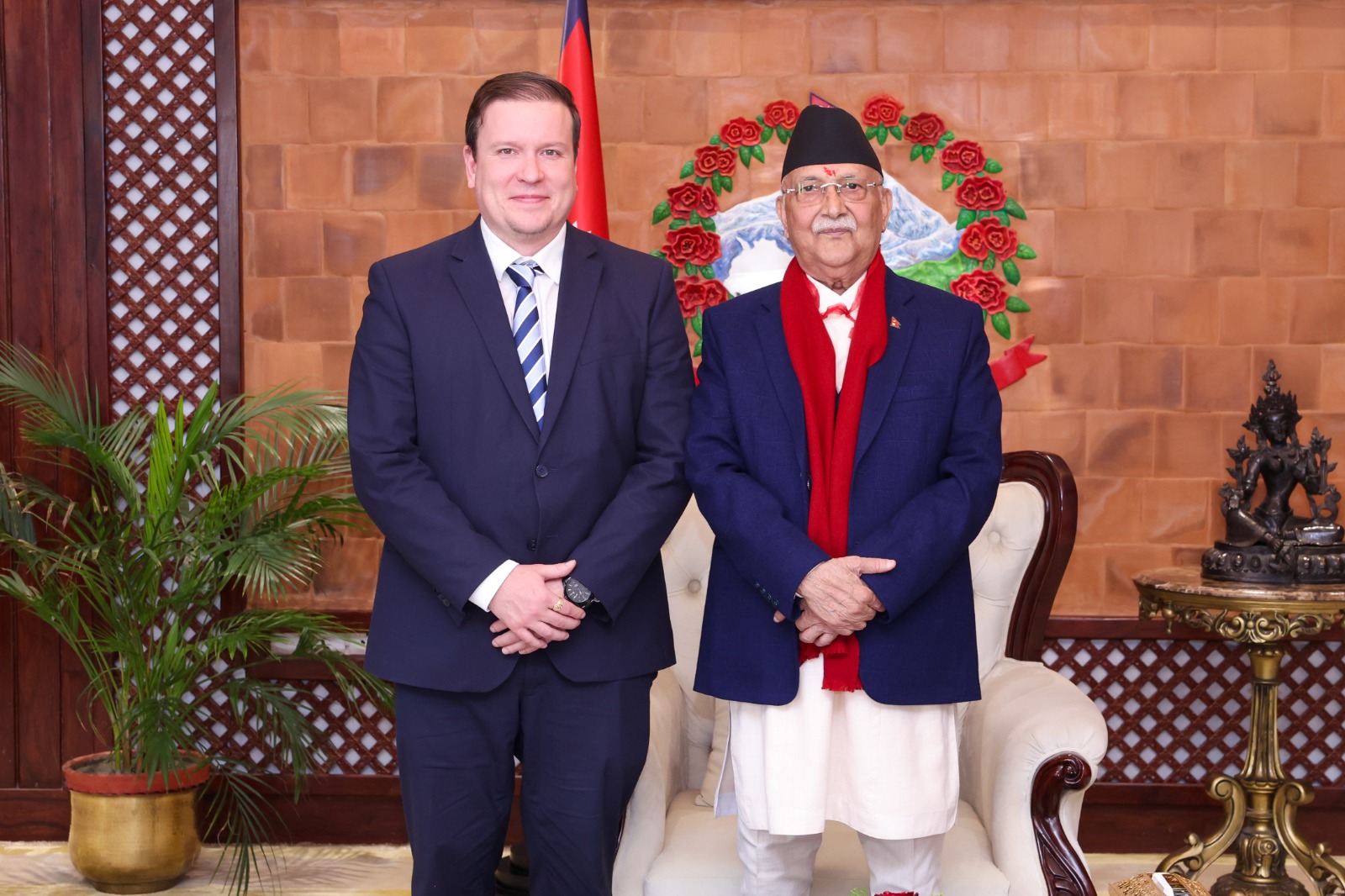 प्रधानमन्त्री निवास, बालुवाटारमा बुधबार भएको भेटमा दुईपीक्षय हित र आपसी सम्बन्धका विविध पक्षमा कुराकानी भएको थियो ।