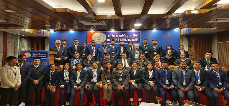 राष्ट्रिय वाणिज्य बैंक लिमिटेडले लोक सेवा आयोगबाट सञ्चालित लिखित परीक्षा तथा अन्तरवार्ताबाट कोशी, मधेश र बागमती प्रदेशका लागि प्रदेशगत रुपमा छनौट भएका नवनियुक्त सहायक (प्रशासन सेवाका) ९५ जना र बरिष्ठ सहायक स्तरका २ जना गरी जम्मा ९७ जना कर्मचारीहरुलाई चौध दिने पूर्व सेवाकालिन तालिम काठमाडौंमा सञ्चालन गरेको छ ।
