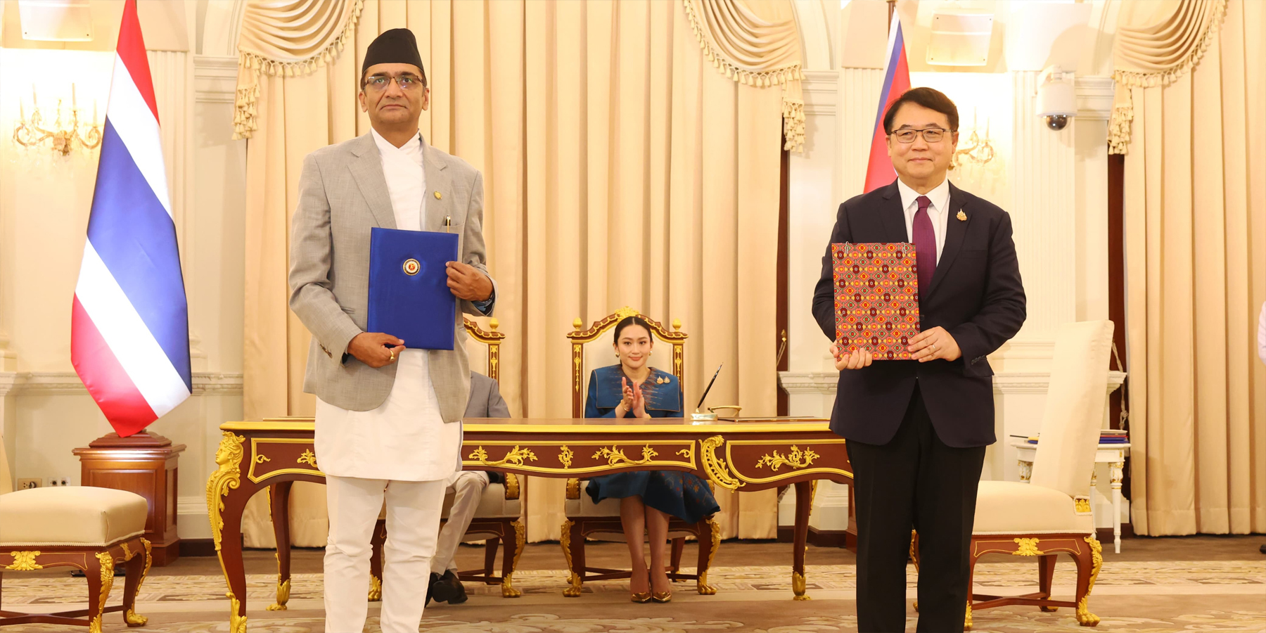 थाइल्याण्डको पहिलो औपचारिक भ्रमणमा रहनुभएका प्रधानमन्त्री केपी शर्मा ओली र समकक्षी पे थोङ् थान् शिनावात्राबीचको दुईपक्षीय भेटवार्तापछि उहाँहरूको उपस्थितिमा भएको सहमतिपत्रमा हस्ताक्षर समारोहमा उक्त सहमतिपत्र आदानप्रदान गरिएको छ ।