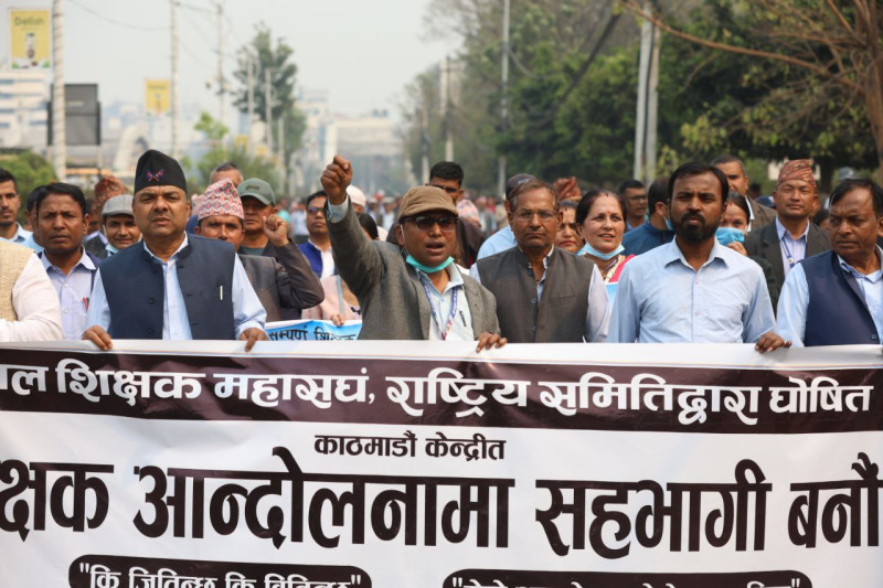 शिक्षा ऐन जारी गर्नुपर्ने लगायत माग राखेर देशभरका शिक्षक आन्दोलनमा छन्। उनीहरू काठमाडौं आएर माघ २० गतेदेखि प्रदर्शन गरिरहेका छन्।