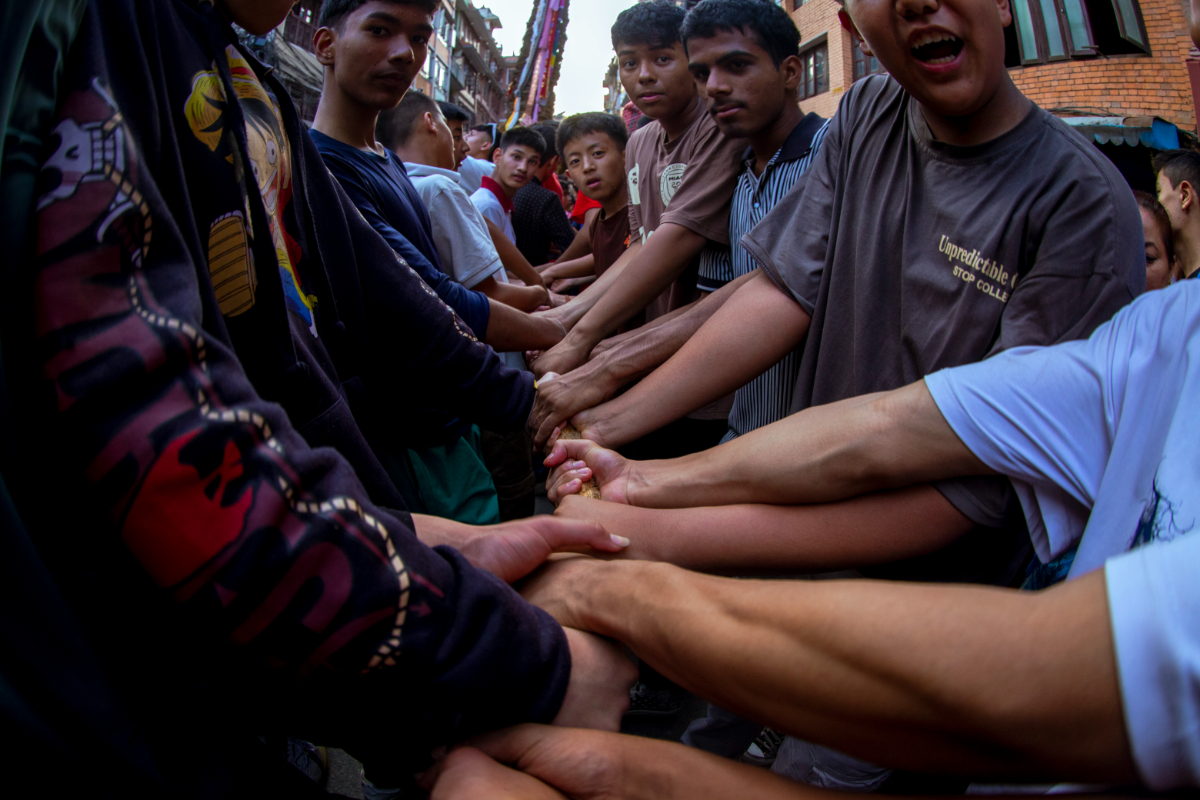 पुल्चोकमा ६० फिट अग्लो रथ निर्माण गरेर मच्छिन्द्रनाथलाई विराजमान गराइ ललितपुरको नगर परिक्रमा गराइन्छ। रथयात्रा पुल्चोकबाट सुरु भएर गाःबहाल, मंगल बजार, हखा, सुन्धारा, चक्रबहिल, लगनखेल हुँदै जावलाखेलमा समापन हुन्छ। समयसापेक्ष परम्परा अनुसार इति र थाती क्षेत्रको बिचमा महिलाले मात्रै रथ तान्ने गरिन्छ जसलाइ याकः मिसाया भुज्या भनिन्छ।