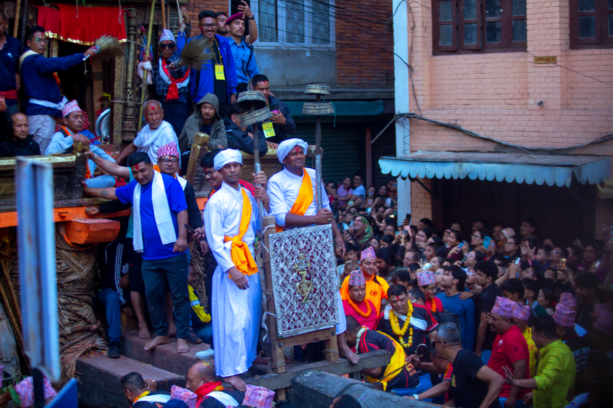 वर्षा र सहकालका देवता मानिने रातो मच्छिन्द्रनाथलाई सोमबार रथारोहण गरिएको हो।
