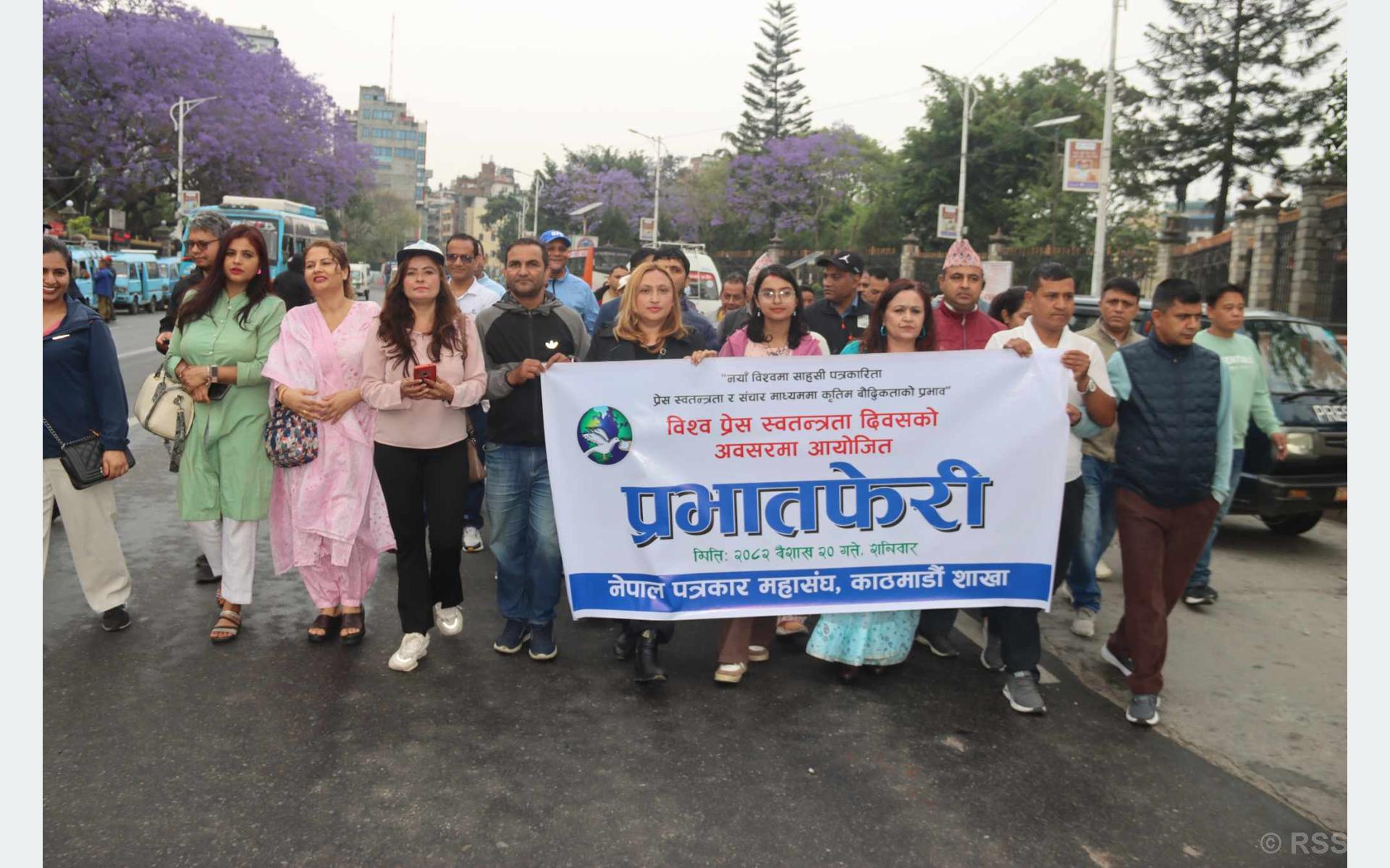 विश्व प्रेस स्वतन्त्रता दिवसको अवसरमा नेपाल पत्रकार महासङ्घ काठमाडौँ शाखाले आज यहाँ प्रभातफेरी आयोजना गरेको छ ।