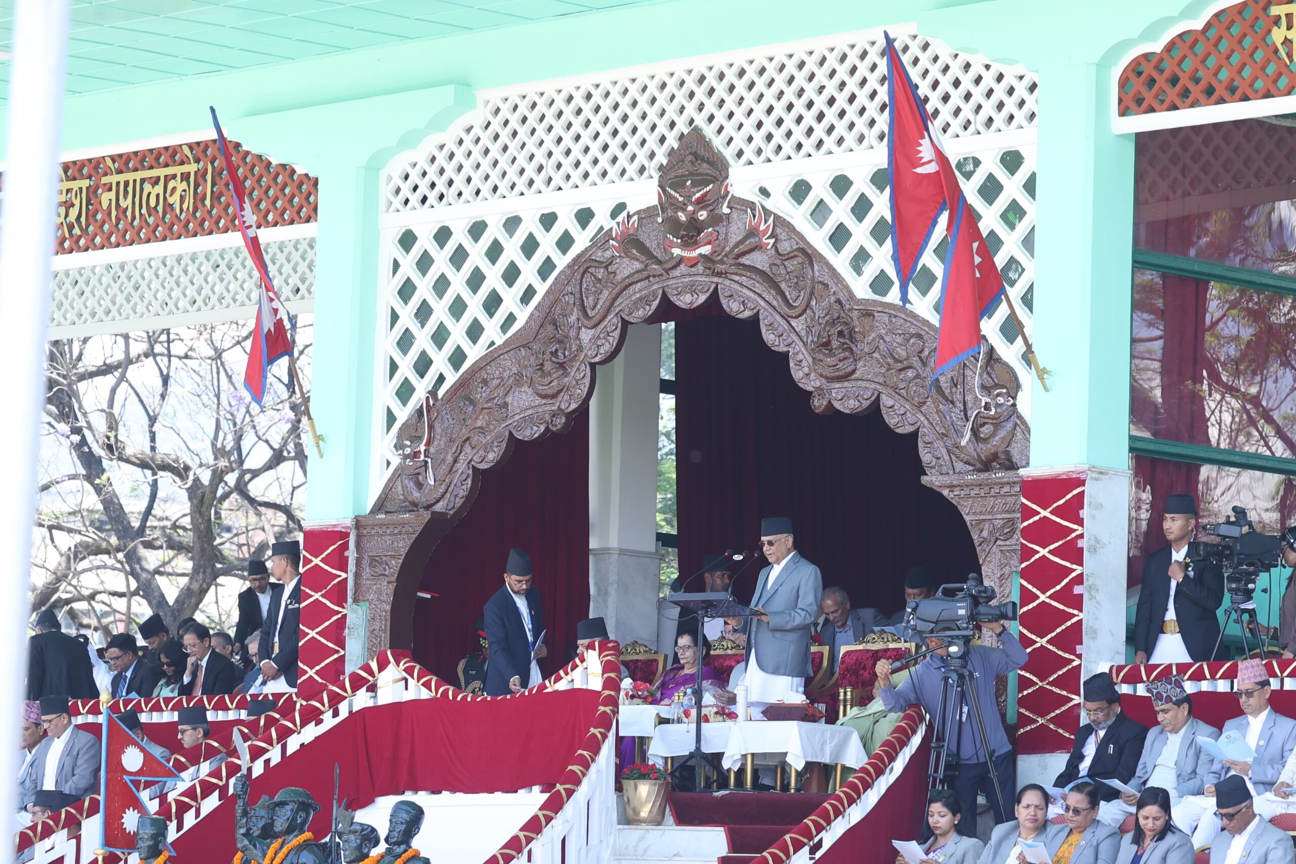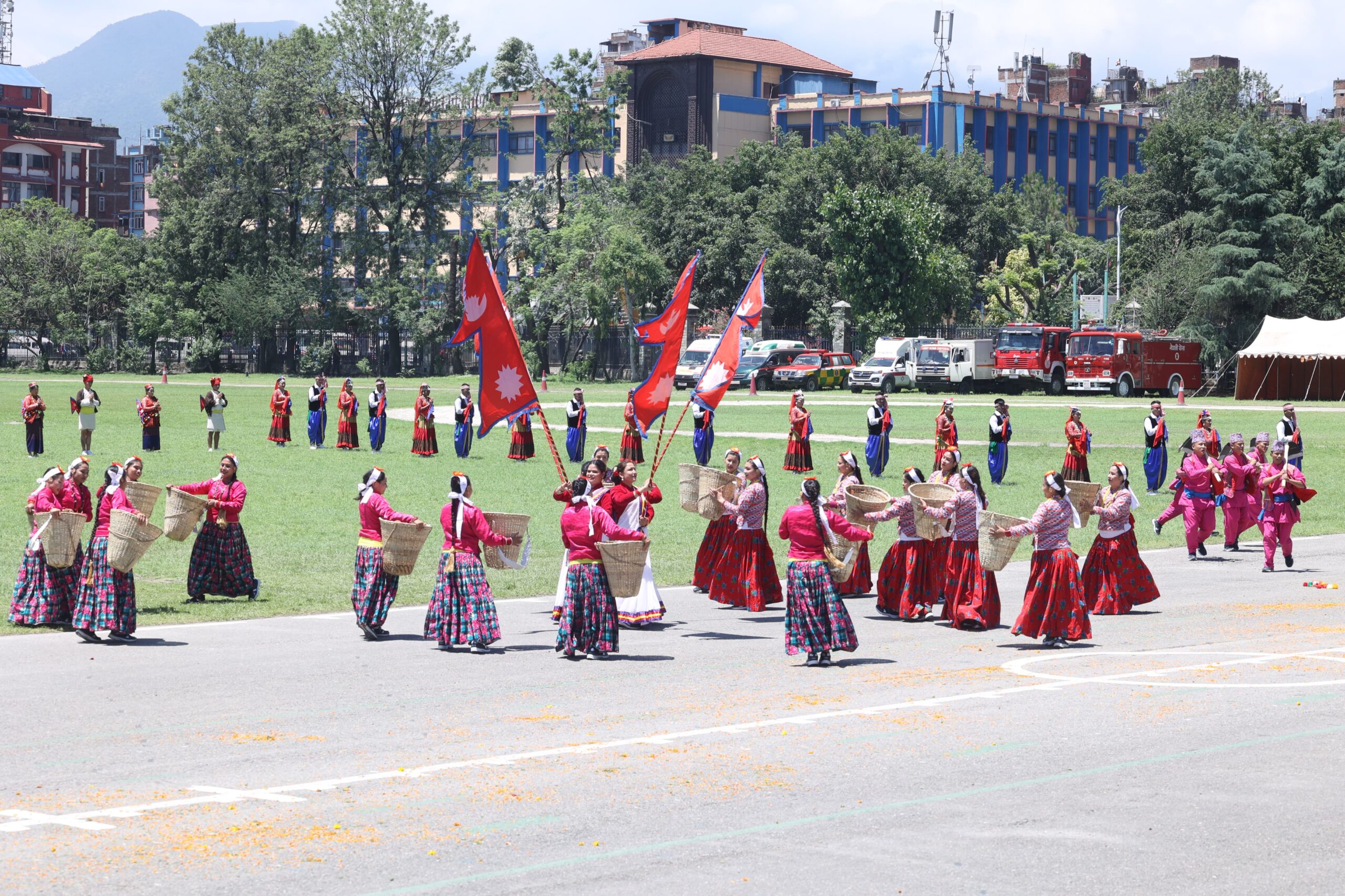 कार्यक्रमको अवसरमा सैनिक मञ्च टुँडिखेलमा विभिन्न झाँकी प्रश्तुत गरिएको छ । समारोहमा राष्ट्रपतिको सम्मानमा नेपाली सेनाको टुकडीले सलामी अर्पण गरेको छ । समारोहलाई प्रधानमन्त्री केपी शर्मा ओलीले सम्बोधन गर्नुभएको छ ।