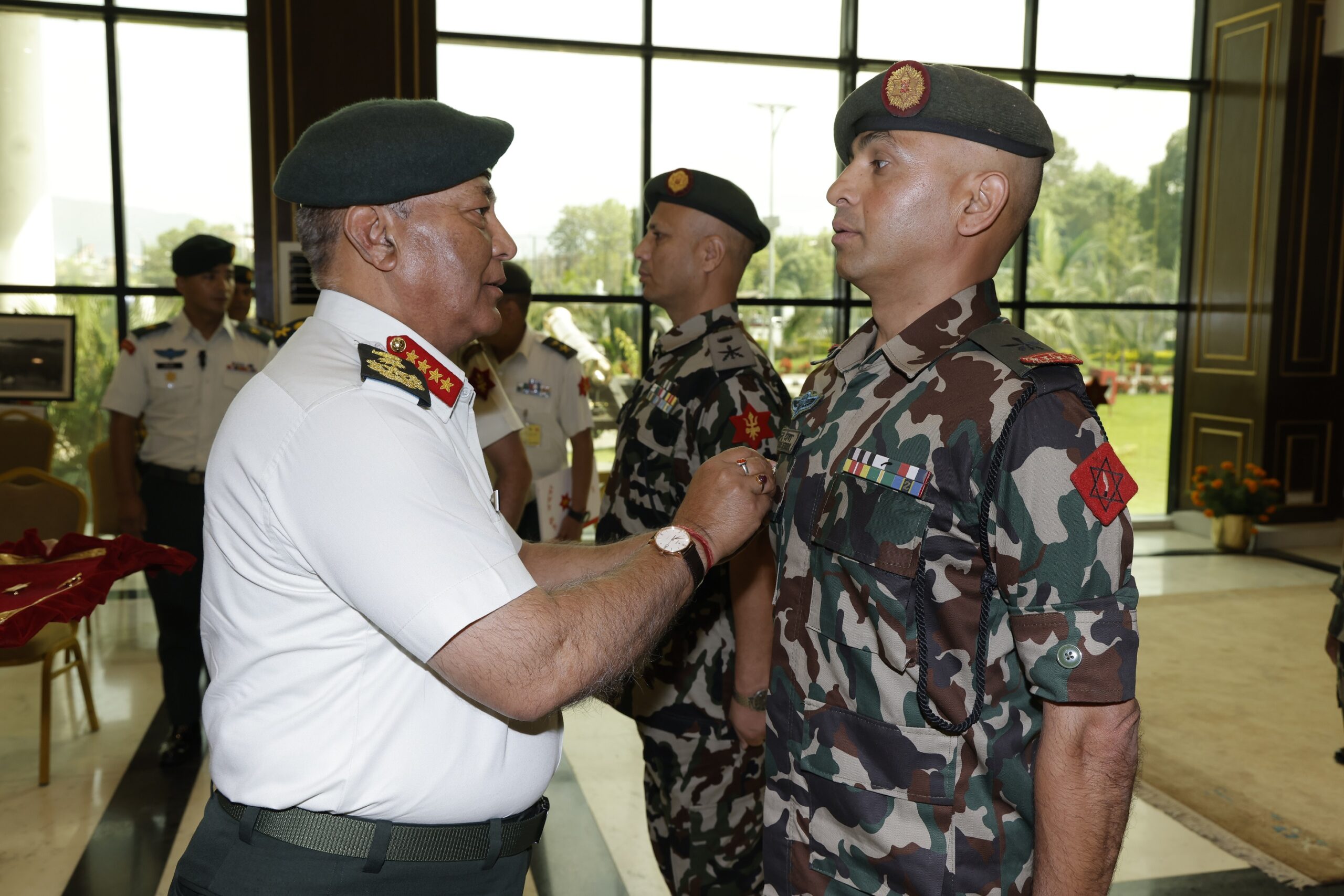 आज जंगी अड्डामा आयोजित कार्यक्रममा प्रधान सेनापति अशोक राज सिग्देलले नेपाली सेनाका अधिकृत, पदिक तथा अन्यदर्जा १० जना र केन्द्र एवं वेस क्याम्पबाट समन्वय गर्ने ५ जना गरी १५ जनालाई प्रधान सेनापति प्रशंसा निसान प्रदान गरिएको हो ।