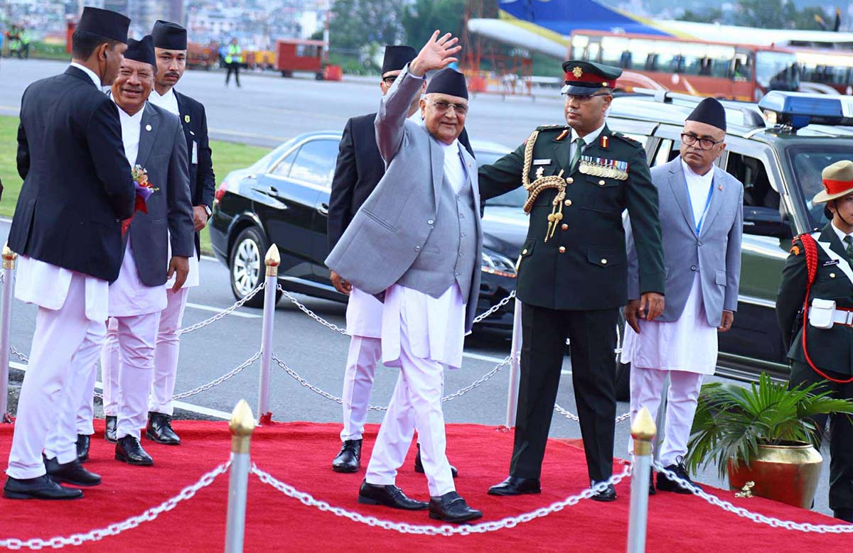 संयुक्त राष्ट्रसङ्घको ‘विकासका लागि वित्तसम्बन्धी चौथो अन्तर्राष्ट्रिय सम्मेलन’ मा सहभागी हुन नेपाली प्रतिनिधिमण्डलको नेतृत्व गर्दै प्रधानमन्त्री केपी शर्मा ओली शनिबार स्पेन प्रस्थान गर्नुभएको छ। त्रिभुवन अन्तर्राष्ट्रिय विमानस्थलमा प्रधानमन्त्री ओलीलाई उपप्रधान तथा सहरी विकासमन्त्री प्रकाशमान सिंह, गृहमन्त्री रमेश लेखकलगायतले प्रधानमन्त्रीलाई बिदाइ गर्नुभएको हो।