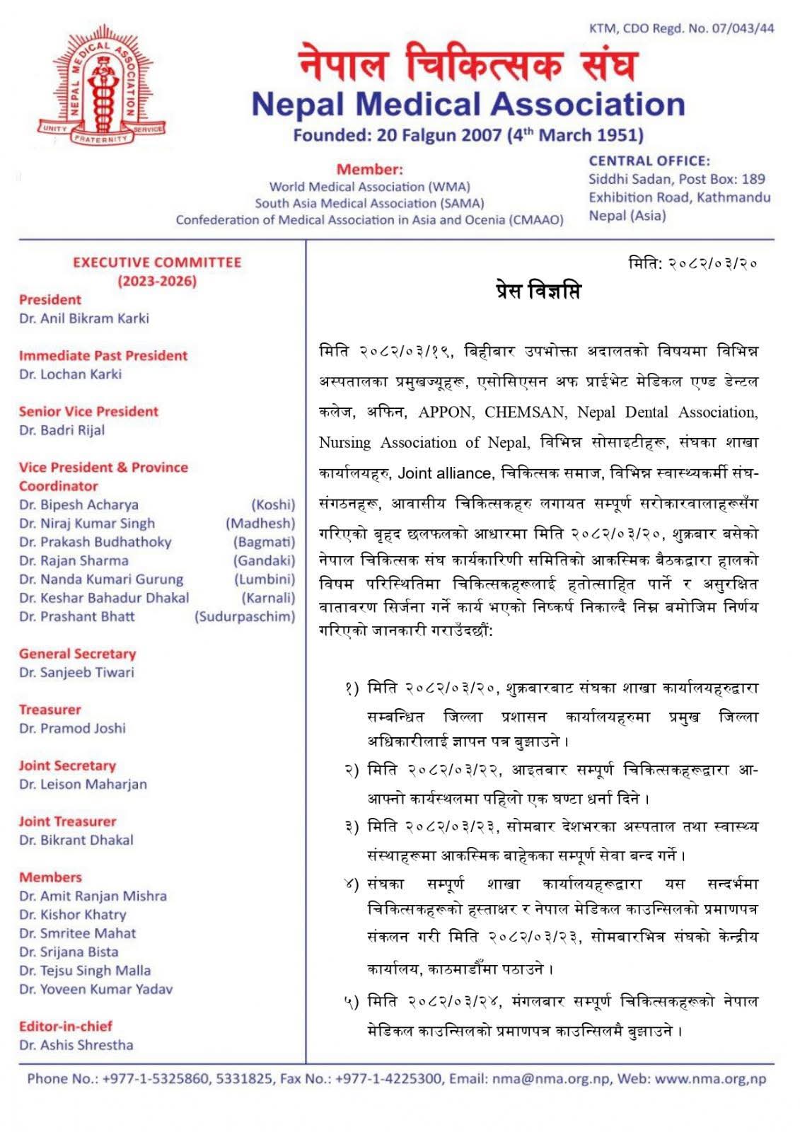 चिकित्सकीय अभ्याससम्बन्धी मुद्दामा उपभोक्ता अदालतको फैसलामा असन्तुष्टि जनाउँदै देशभर चिकित्साकर्मीहरु आन्दोलनमा रहेका छन्।