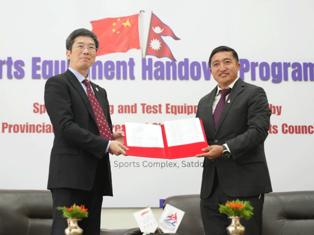 चीनको युनान प्रादेशिक खेलकुद ब्युरोले राष्ट्रिय खेलकुद परिषद् (राखेप) लाई खेल सामग्री तथा स्वास्थ्य परीक्षण उपकरण हस्तान्तरण गरेको छ ।
