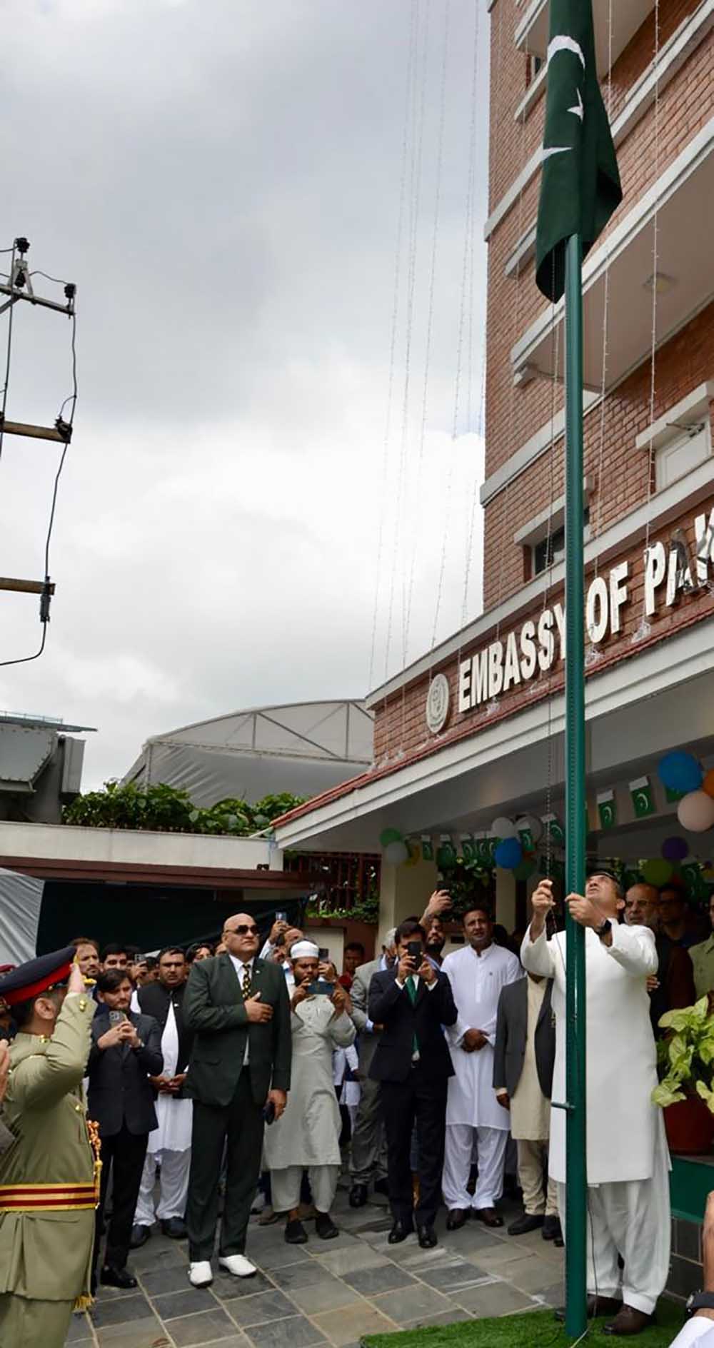 पाकिस्तानको ७९ औं स्वतन्त्रता दिवसका अवसरमा नेपालस्थित पाकिस्तानी दूतावासमा झन्डोत्तोलन गरिएको छ । नेपालका लागि पाकिस्तानका राजदूत अबरार एच हाश्मीले पाकिस्तानको राष्ट्रिय झन्डा फहराउनु भयो ।