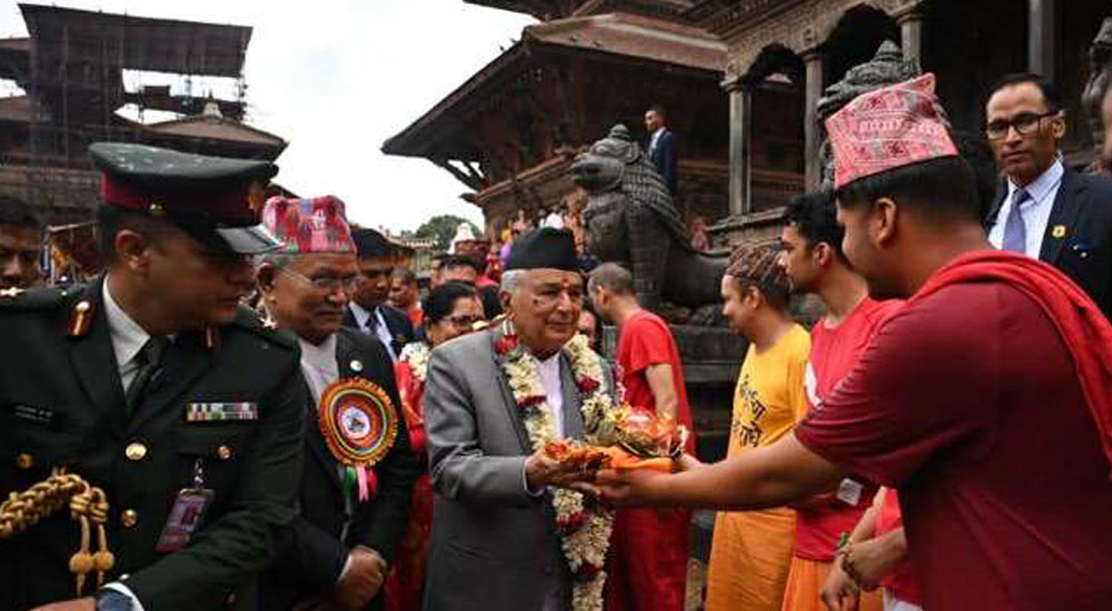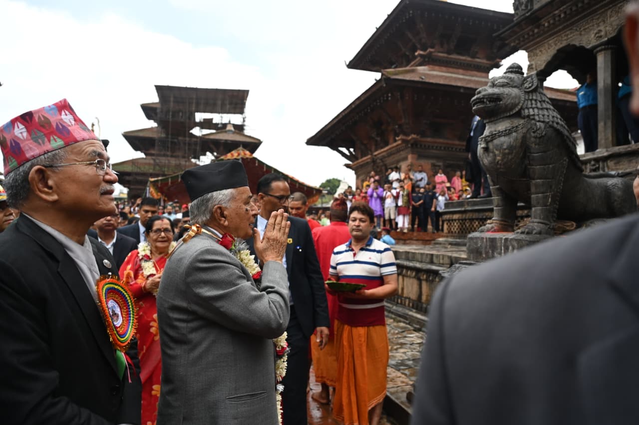 राष्ट्रपति पौडेलले पाटनस्थित् कृष्ण मन्दिरको दर्शन र भगवान् श्रीकृष्णको पूजा आराधना गरी प्रसाद ग्रहणसमेत गर्नुभएको छ ।