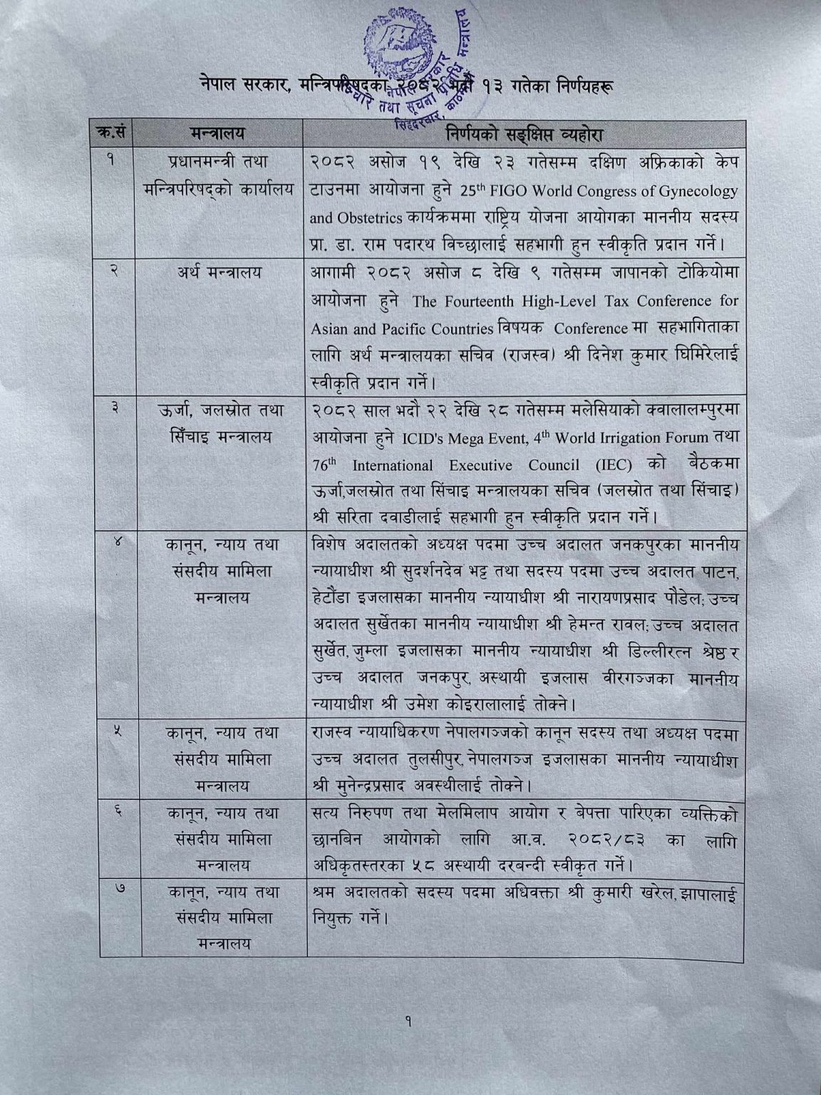 मन्त्रिपरिषद् बैठकका निर्णय :