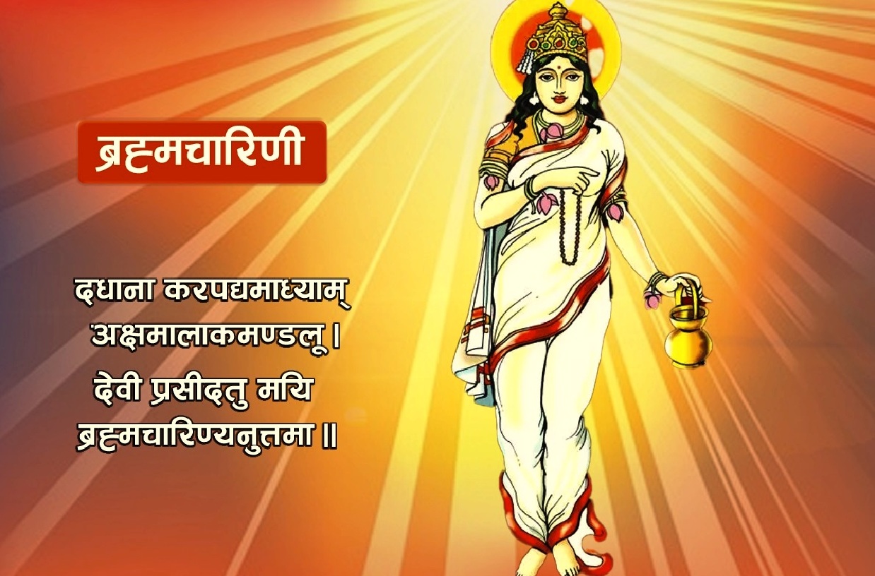 संसारका मुमुक्षु प्राणीलाई सच्चिदाननद रुप ब्रह्मको बोध गराउनका लागि निरन्तर लागिरहने मान्यतामा नवदुर्गा मध्येको दोस्रो देवीलाई ब्रह्मचारिणी भनिएको हो । ब्रह्मचारिणीको हातमा कमल, अक्षमाला र कमण्डलु बनाइनुपर्छ भन्ने विधान छ ।