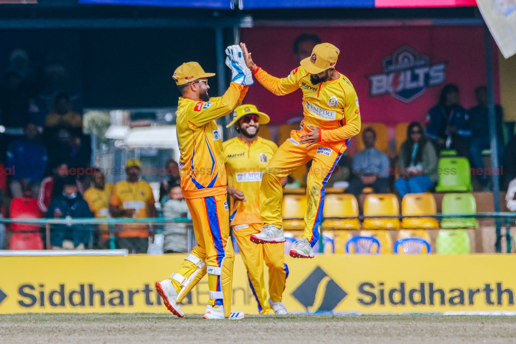 यस्तै आरिफ शेखले ३९ र क्रिस लेनले १६ रन बनाउनुभयो । बलिङमा लुम्बिनीका अविशेष गौतम, रुवेन ट्रम्पलम्यान र तिलक भण्डारीले एक एक विकट लिनुभयो ।
