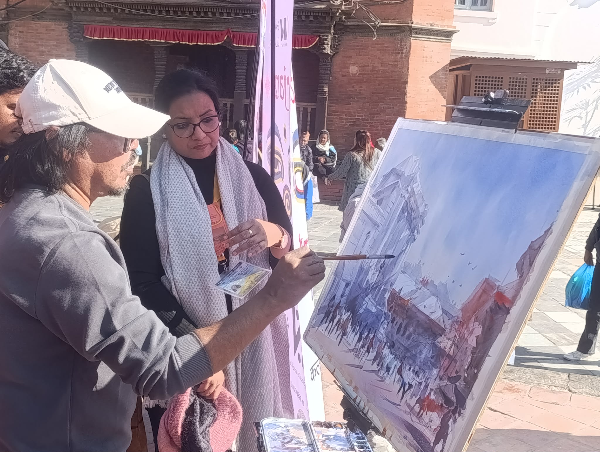 आज आर्ट क्याम्पमा सङ्घले यहाँ सहभागी कलाकारलाई क्यानभाससहित रङसमेत वितरण गरेको थियो । कलाकारहरूले वसन्तपुर दरबार क्षेत्रका सम्पदालाई क्यान्भासमा उतारेका छन् । आजको क्याम्पमा अग्रज कलाकार तथा अन्तर्राष्ट्रिय जलरङ समाज नेपालका अध्यक्ष एनबि गुरुङले कलाको ‘लाइभ डेमोस्ट्रेसन’ गर्नुभएको थियो ।