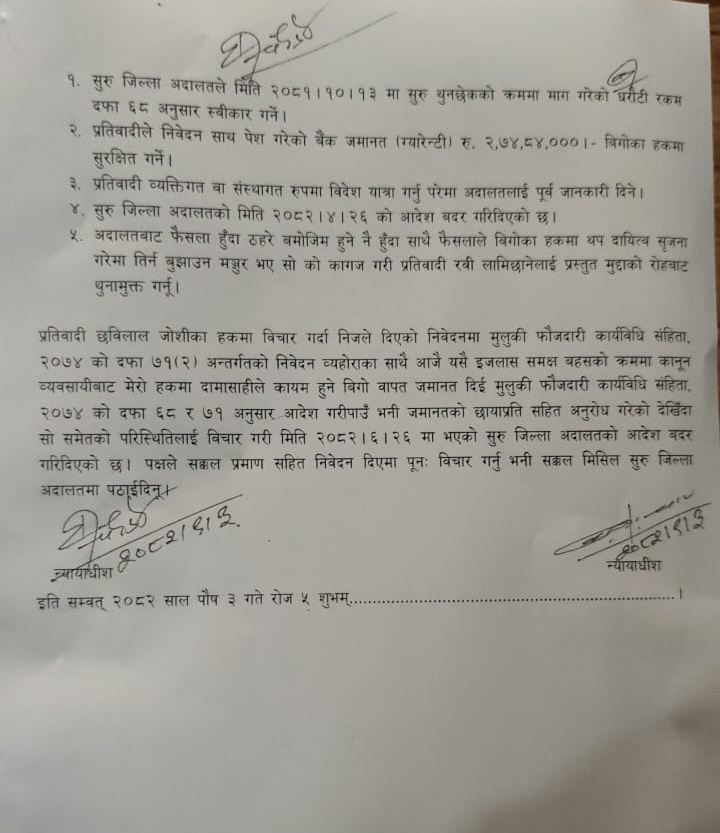 बिहिवार न्यायाधीश बासुदेव आचार्य र तेजनारायण पौडेलको इजलासमा भएको मुद्दाको सुनुवाइमा रविलाई थुनामुक्त गर्ने आदेश भएको हो ।