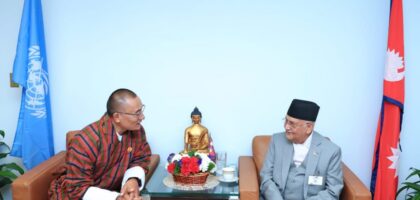 संयुक्त राष्ट्रसङ्घको ७९औँ महासभामा भाग लिन नेपाली प्रतिधिमण्डलको नेतृत्व गर्दै संयुक्त राज्य अमेरिकाको न्युयोर्कमा रहनुभएका प्रधानमन्त्री केपी शर्मा ओेली र भूटानका...