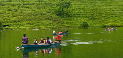 पोखरा महानगरपालिका–३१ लेखनाथमा अवस्थित बेगनास तालमा डुङ्गा सयर गर्दै आन्तरिक पर्यटक । तस्बिरः रामबहादुर थापा/रासस