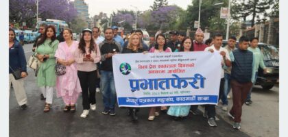 विश्व प्रेस स्वतन्त्रता दिवसको अवसरमा नेपाल पत्रकार महासङ्घ काठमाडौँ शाखाले आज यहाँ प्रभातफेरी आयोजना गरेको छ । ‘नयाँ विश्वमा साहसी पत्रकारिता,...