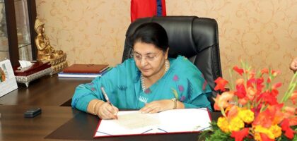 राष्ट्रपति विद्यादेवी भण्डारीले सङ्घीय संसद्को दुवै सदनको बैठकबाट पारित भई प्रमाणीकरणको लागि पेस हुन आएको विनियोजन विधेयक प्रमाणीकरण गर्नुभएको छ ।...