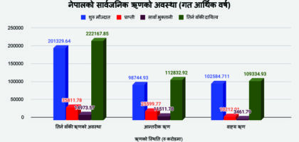 नेपालले तिर्न बाँकी सार्वजनिक ऋण रू २२ खर्ब २१ अर्ब ६७ करोड ८५ लाखभन्दा बढी पुगेको छ । सार्वजनिक ऋण व्यवस्थापन...