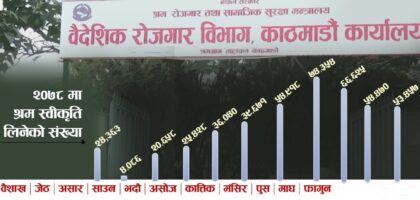 २०७८ साल यता ११ महिनामा वैदेशिक रोजगारकालागि साढे चार लाखभन्दा बढीले लिए श्रम स्वीकृति कोरोना महामारीले थलिएको वैदैशिक रोजगार यस वर्ष...