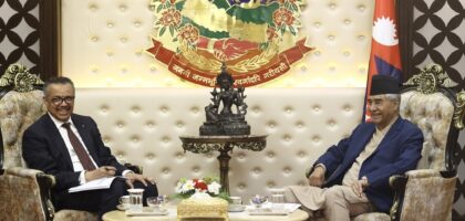 प्रधानमन्त्री शेरबहादुर देउवालाई विश्व स्वास्थ्य संगठनका महानिर्देशक डा. टेड्रोस अधानोम गेब्रेयससले भेट गर्नुभएको छ । प्रधानमन्त्री निवास बालुटारमा भएको भेटमा प्रधानमन्त्रीले...